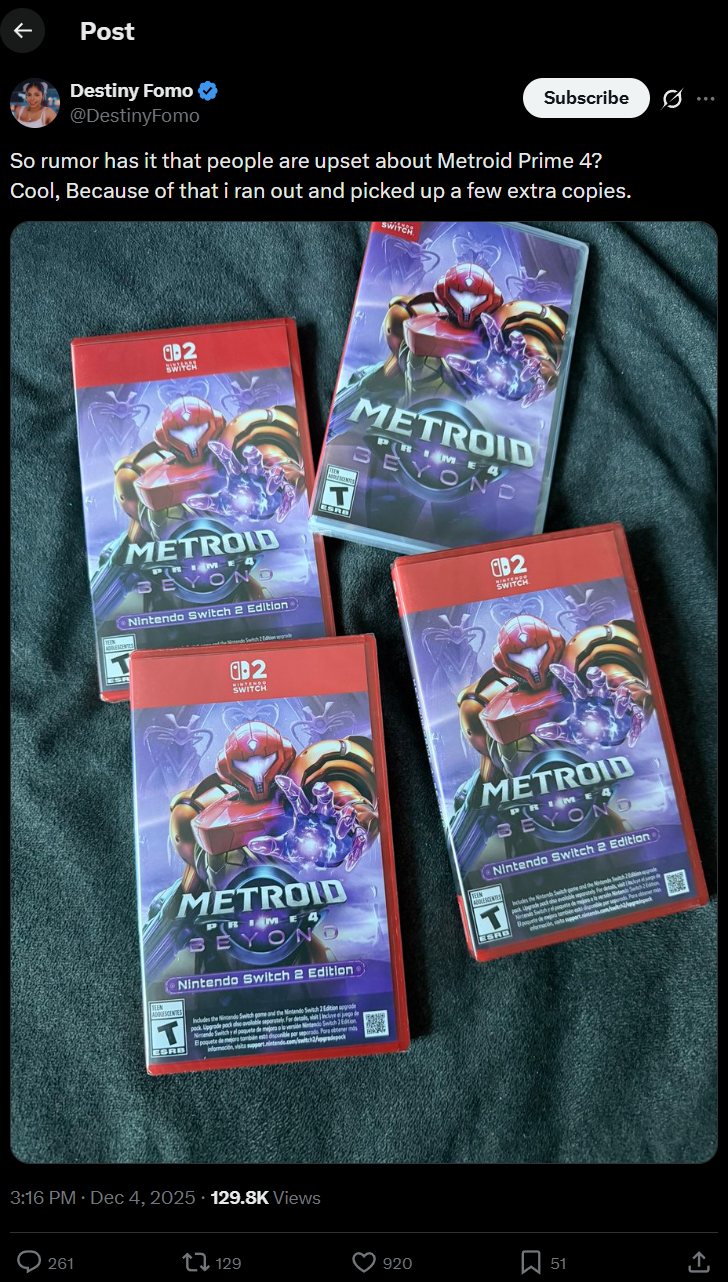 I consider myself a big Metroid fan and I still haven't bothered to check it out. Maybe once the Switch 2 is moddable I'll steal it to try but it honestly doesn't look that appealing.
