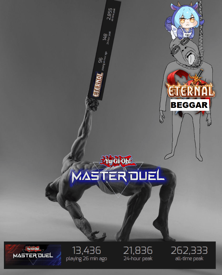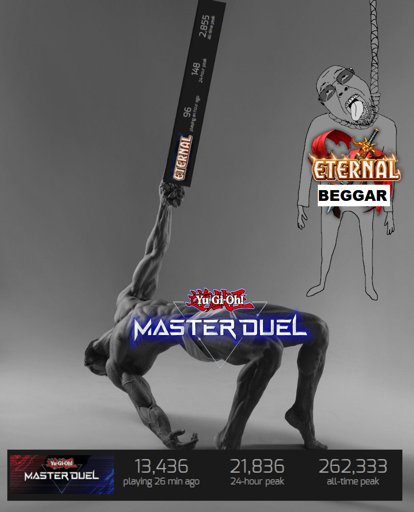 >>735118347>eternal card game Here we go again.Want me to turn this thread into a Steam charts thread and show how much that game is keked?