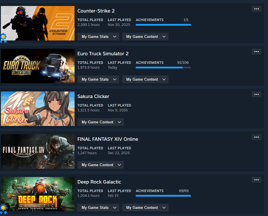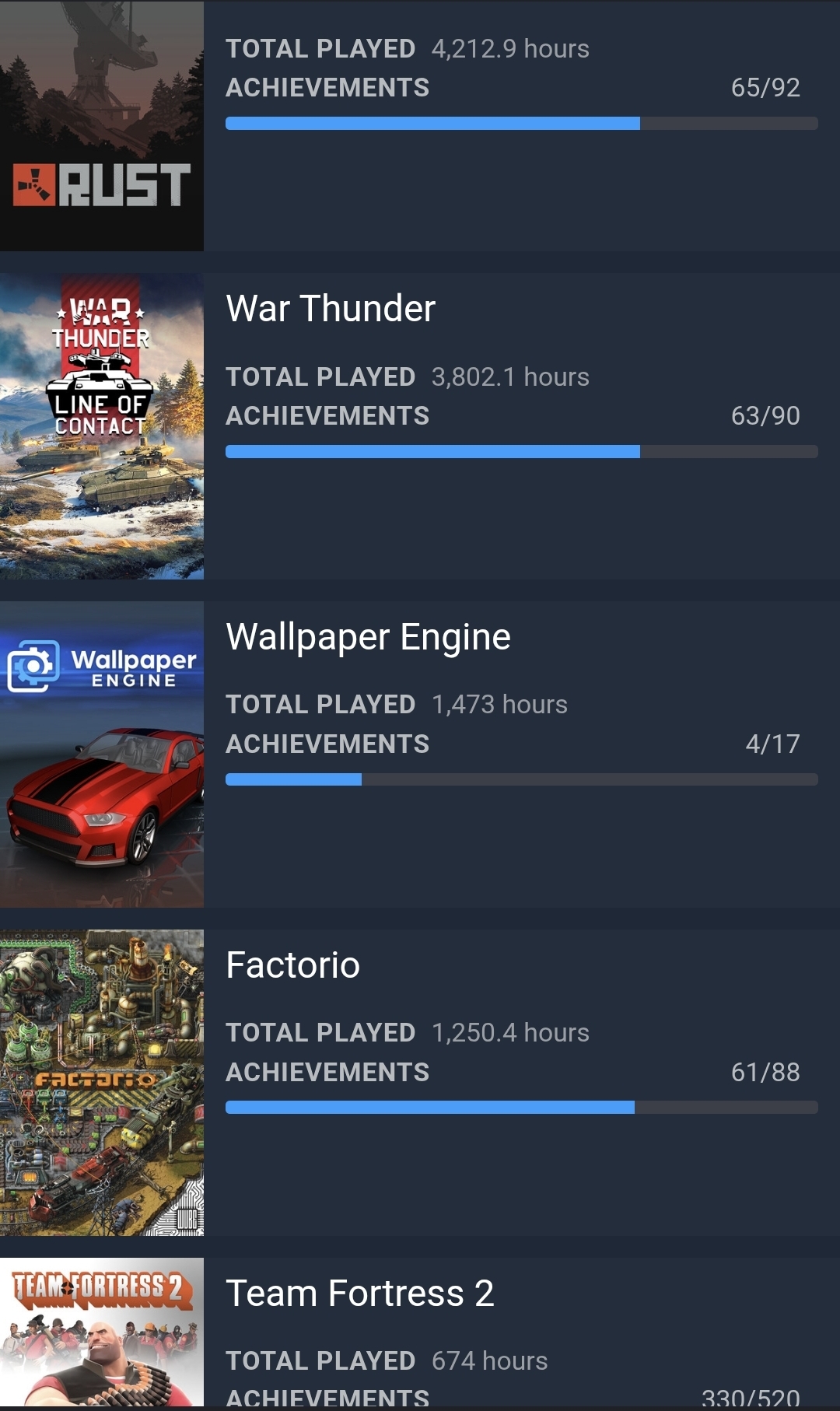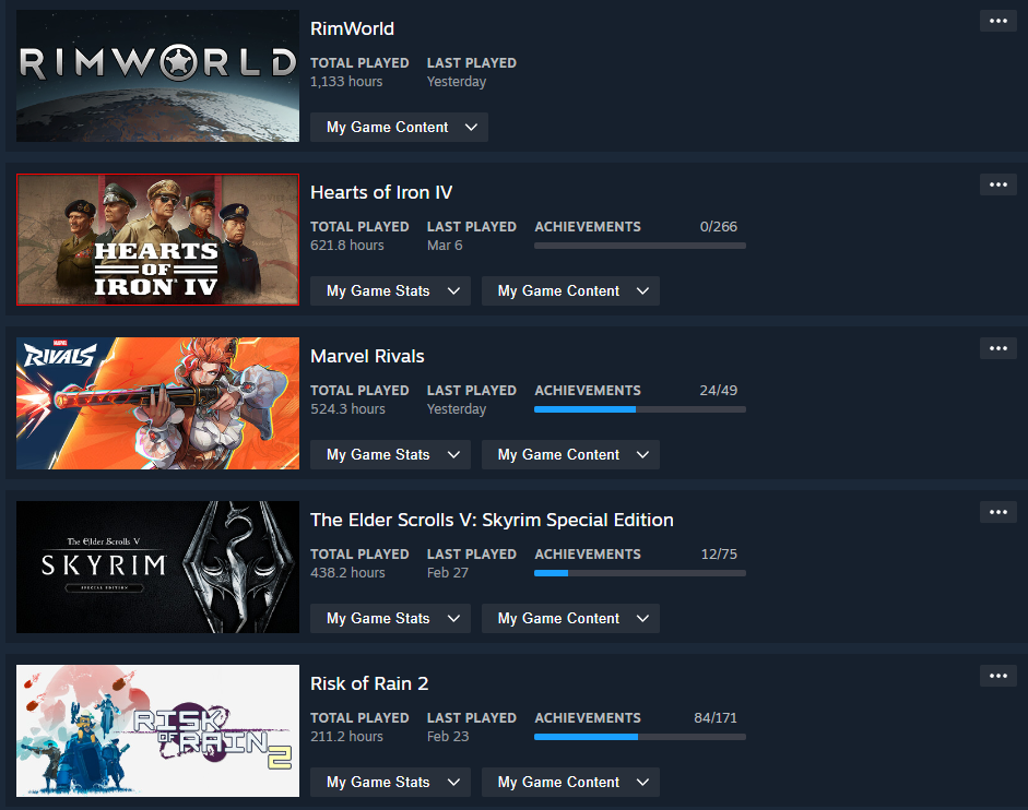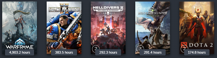 >>735087991 (me)Squad at 592 hours at 5th since wallpaper engine doesn't count.