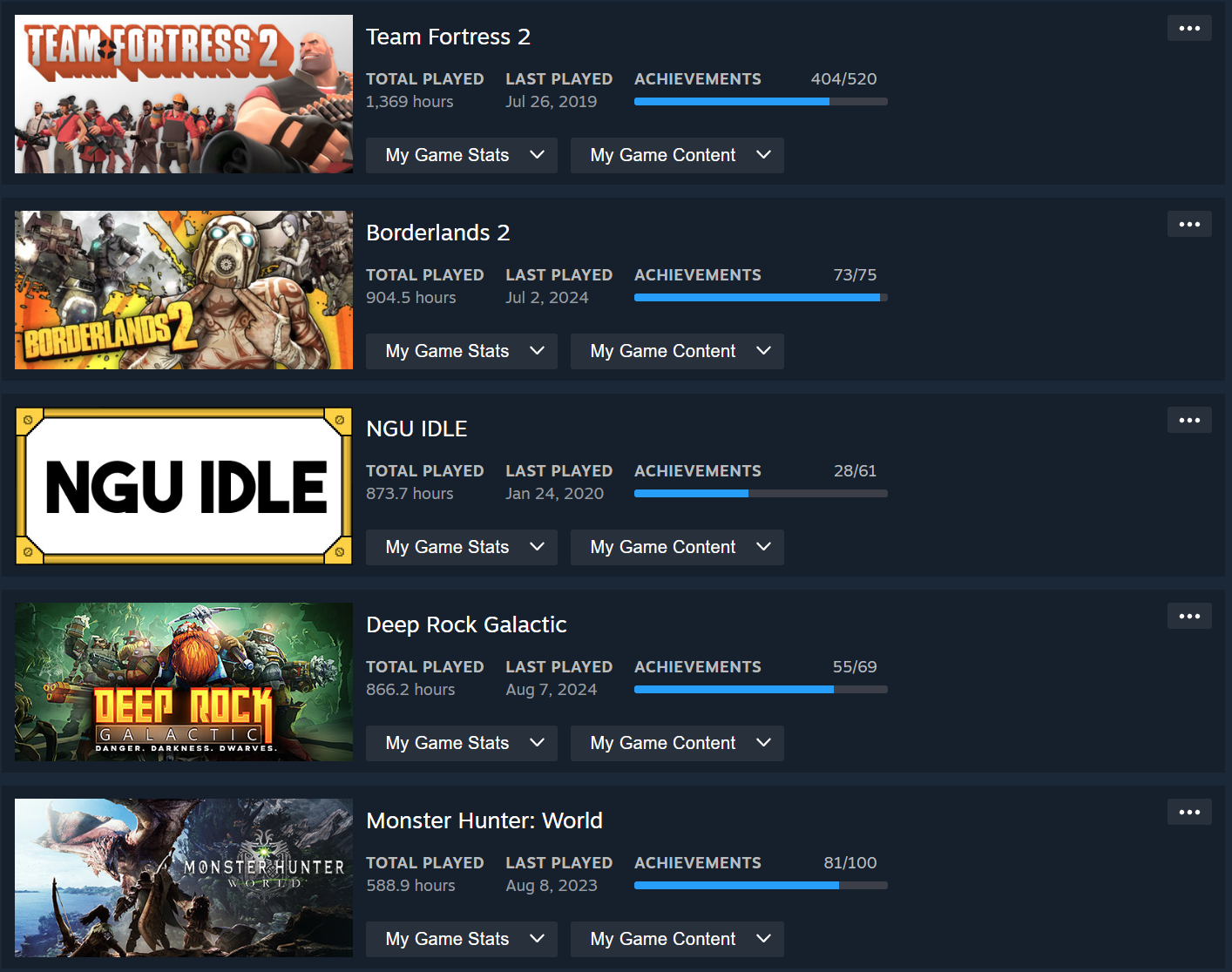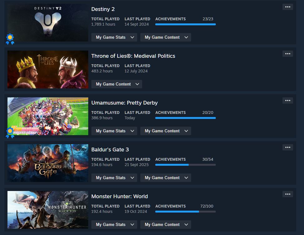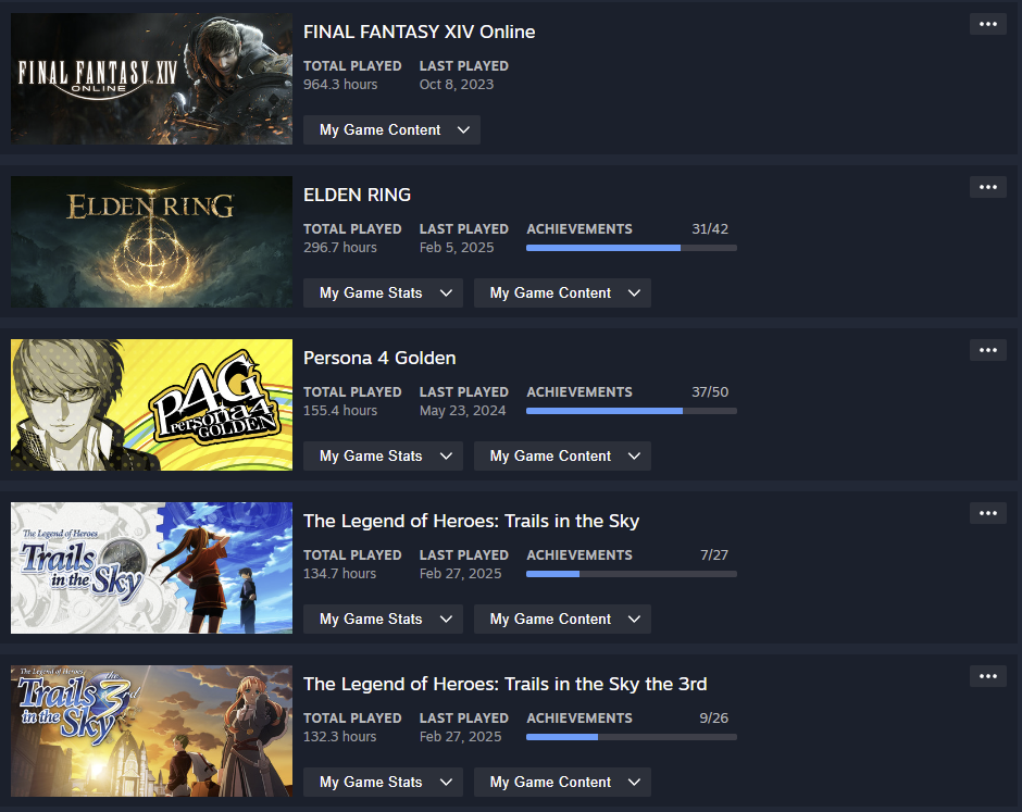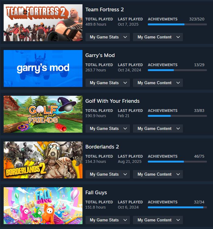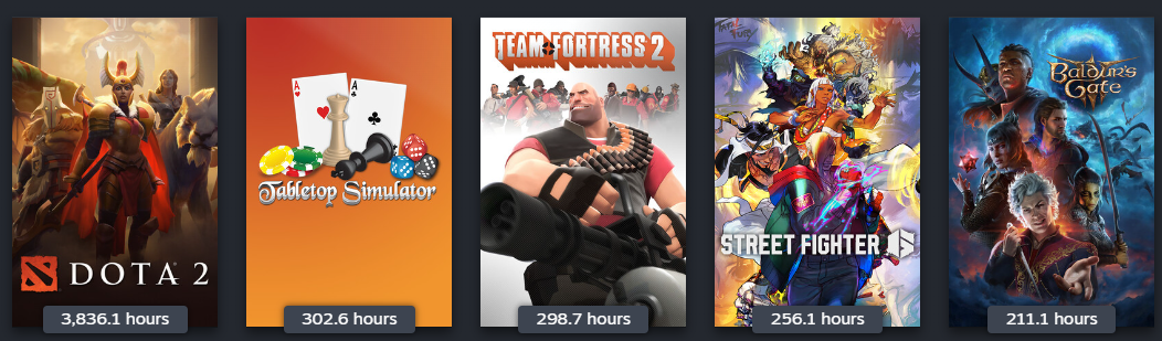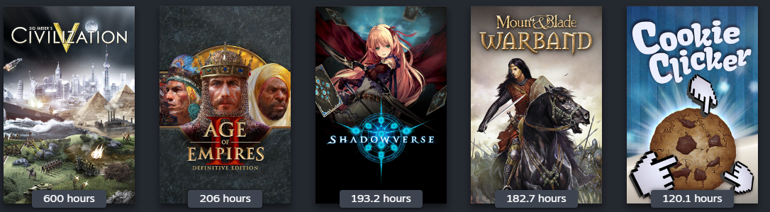 Post your top 5 played on steam, let other anons guess things about you