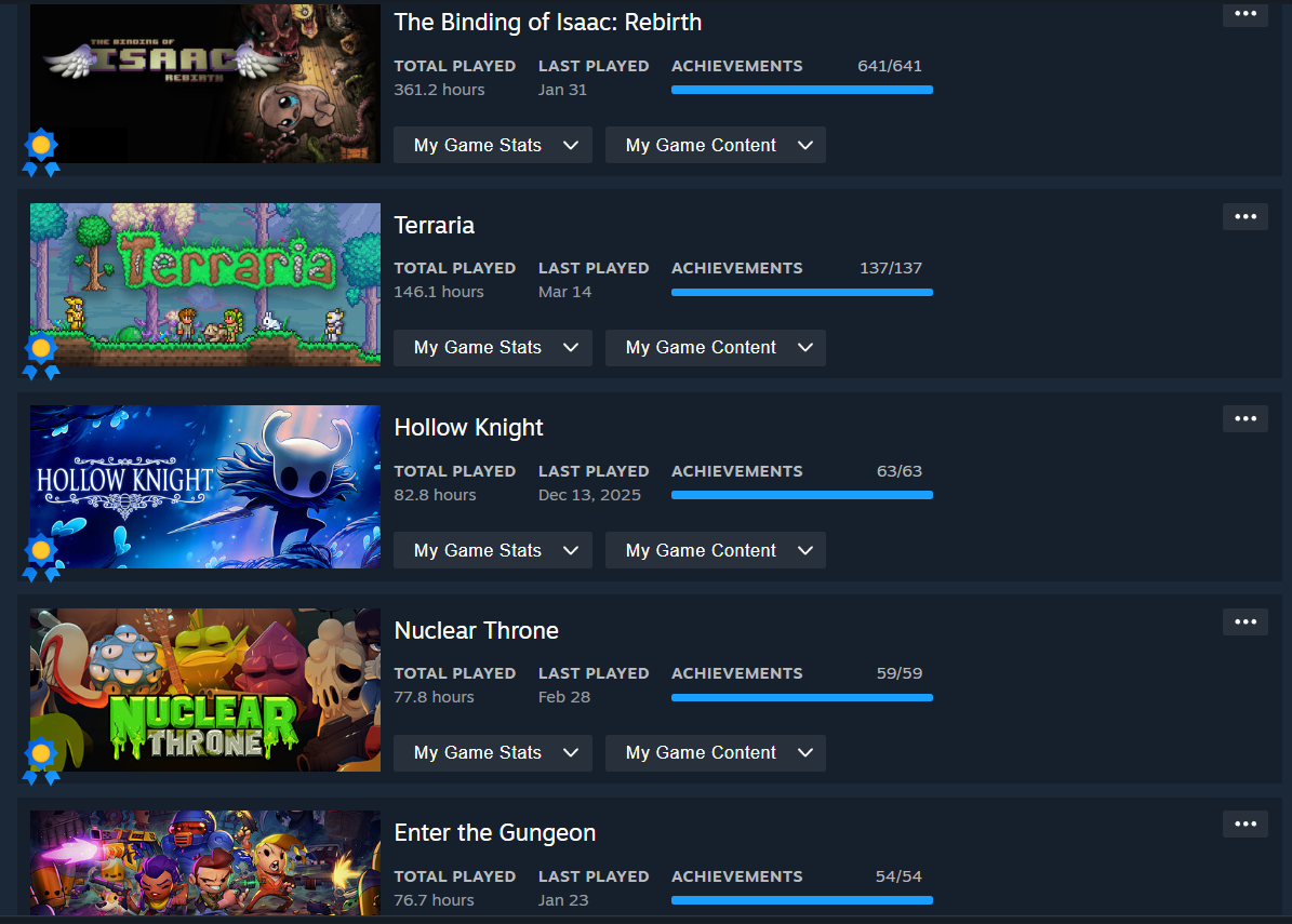 >>735084119>100% BoI in 300h>100% Terraria in 146hm8
