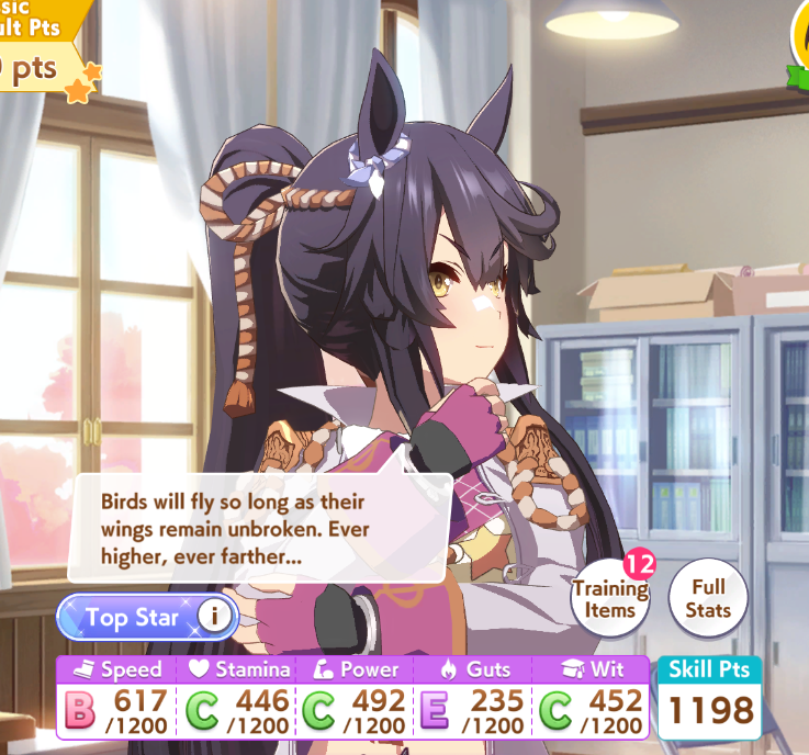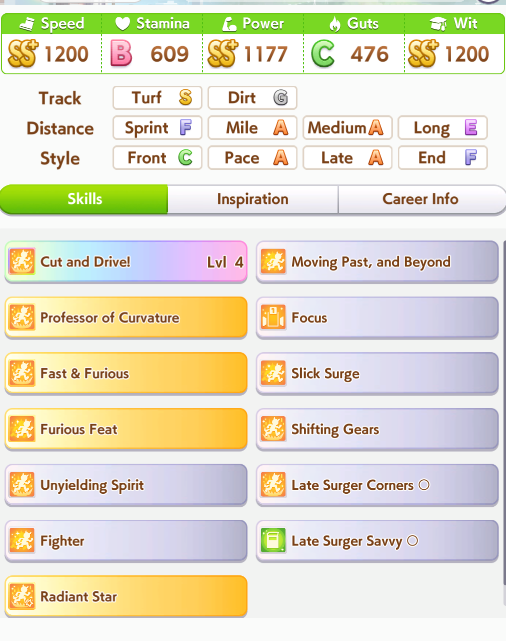 >>735112583>because you're gonna end up with a billion mile/medium skillsNow this is cope, you could get hints for your Style. More races means more skill points, and it also means more skill hints. With your method you can certainly get decent stats, but that's just MANT scenario as a whole, you won't have good skill hints or enough points to get everything you want at the end.