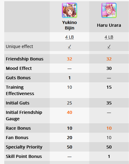 >>735112059Actually, you are over overvaluing races. Races are only as good as your shops, and if you've got a bunch of useful shit in it that you can't pass on, then a race is more valuable then a good training, but conversely, if you're not highrolling your ass off with only the best stuff, you can get everything good in your shops and still afford to skip some races to get good trainings. A G3/G2, even with a rival, is only worth 41 stats, valuing a hint as +10 stats which is likely less because you're gonna end up with a billion mile/medium skills your Uma doesn't want because they're running a different distance, and 37SP, and one without a rival is way worse at 27 stats, much less an OP where you can't get a rival and it's only 17 stats and 30SP. Ending the run with 200 dosh because you kept running races when you didn't need to and had nothing to spend them on is bad and you threw away potential stats.