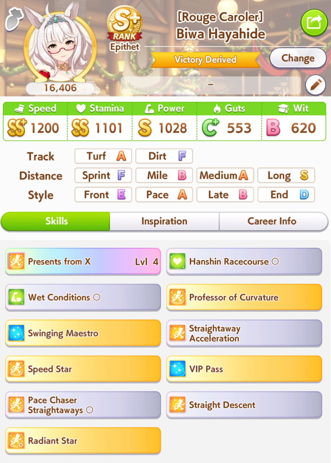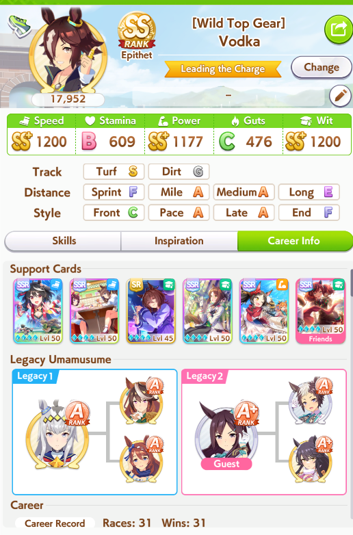 >>7351131672 speed 2 wit 2 pow if you have the cards, experiment with different setups since most people have different parents and cards, sometimes you can luckshit high wit with only 1 card aim for a stat spread like this