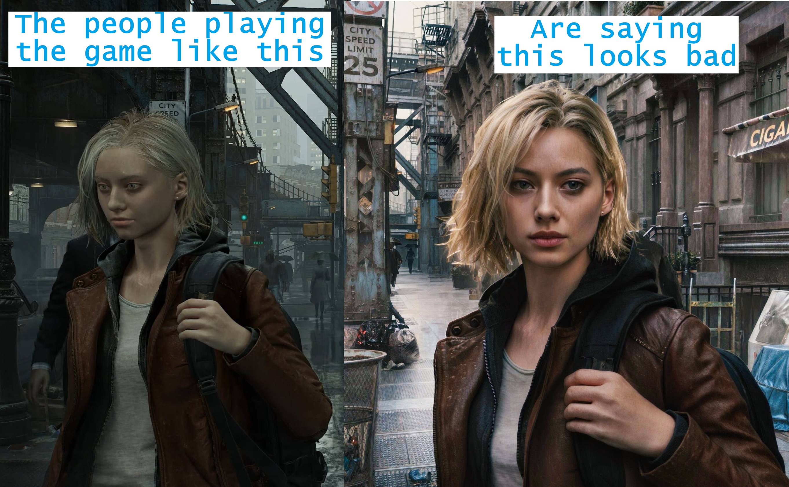 >See Normies praise this AI slop filter>arguing "just dont use it" like always>not understanding that every lazy dev will just make half assed models now and advertise their games as>"optimized for DLSS5"You thought Unreal slop was generic?Here we have the ltrl death of art direction.Gaming isnt dead, its a rotting corpse that retards are prancing around with.