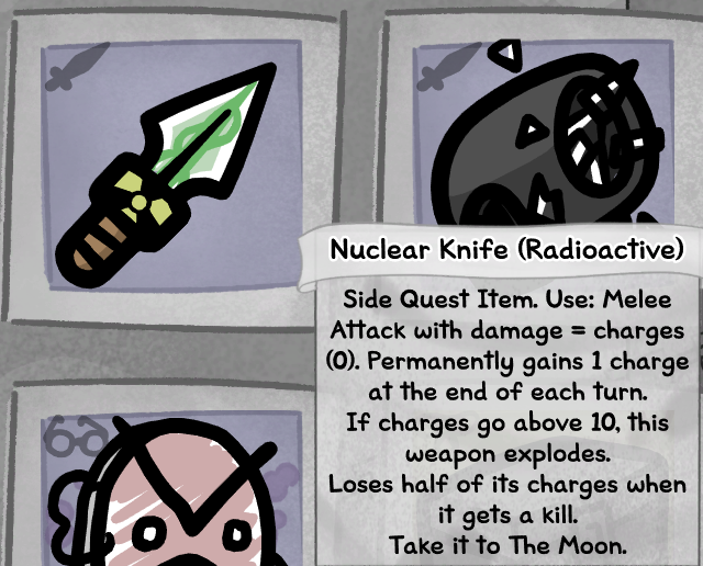 >>735112739As long as you make sure you don't go into the moon boss fight with too many charges, you are pretty much set. It's not a hard quest overall. I never found out what happens when the knife explodes.