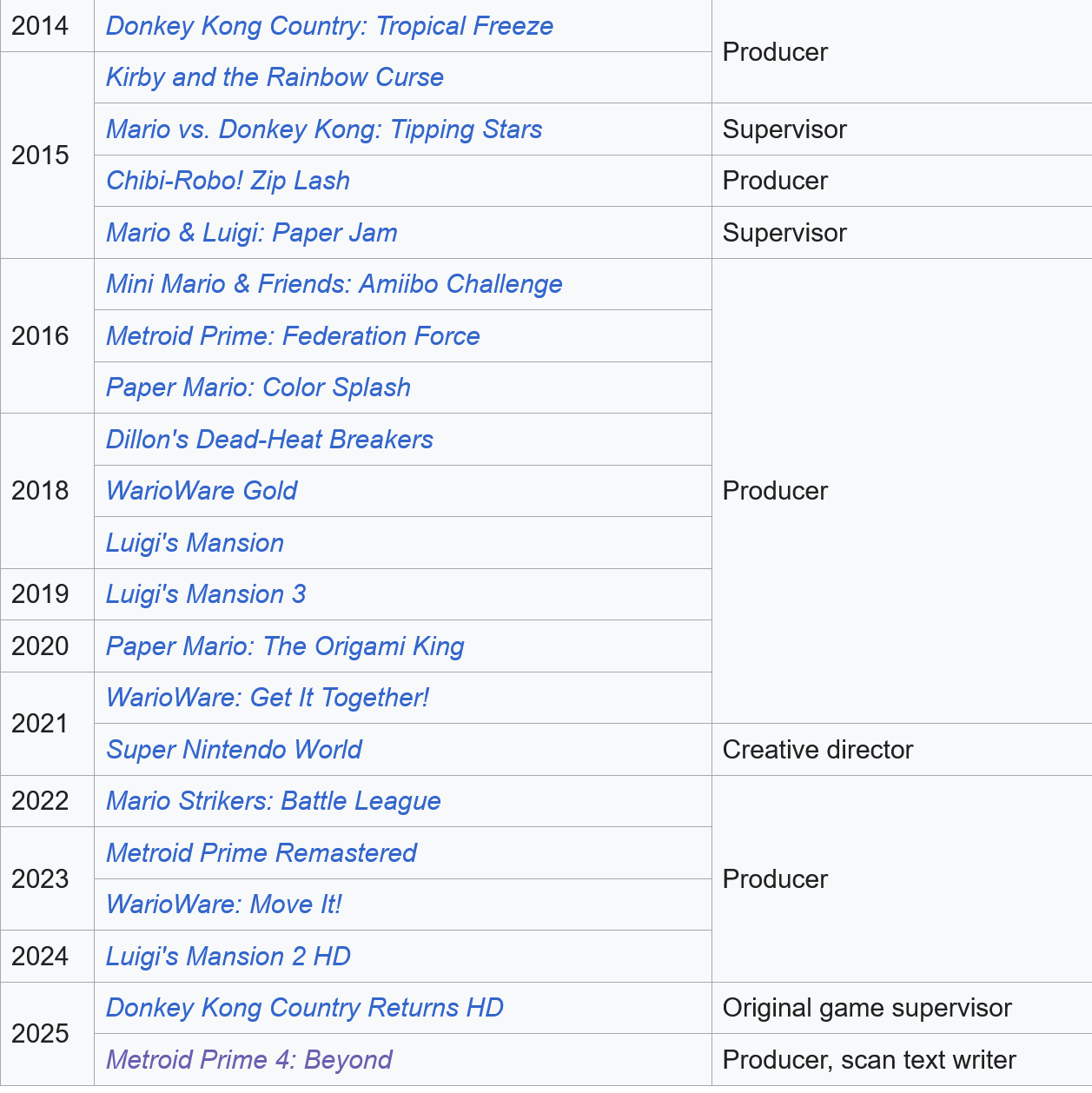 >>735125590If you cut out remasters, the only good things this guy has been involved with in over 10 years amount to Warioware, and Luigi's Mansion 3.