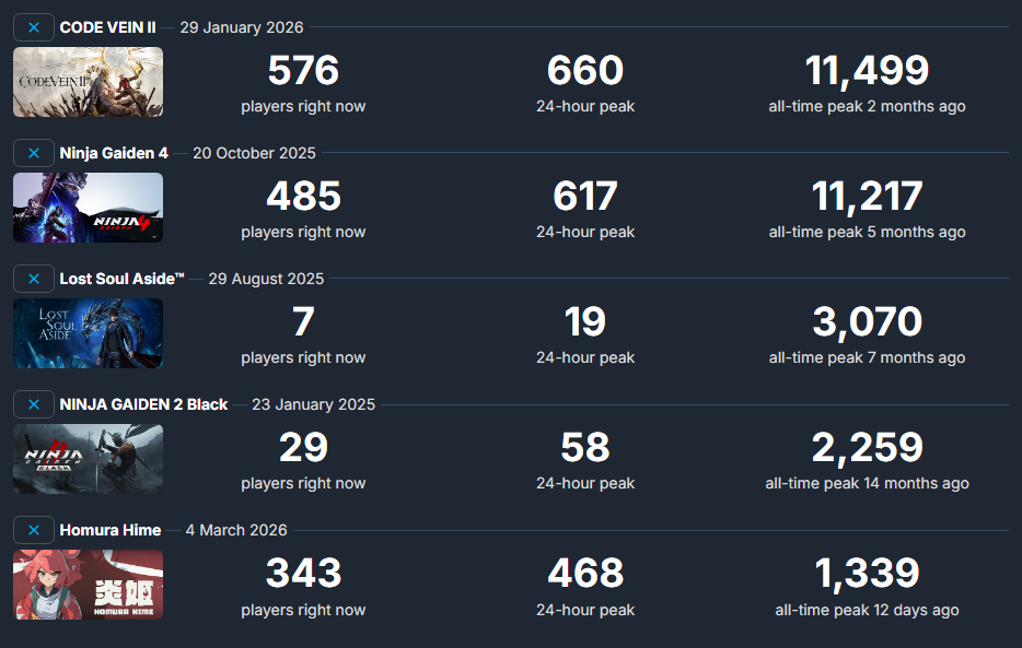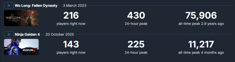 >The last four games I played at launch (Silent Hill F, Ninja Gaiden 4, Code Vein 2 and Fatal Frame 2 remake) were turbobombs It depresses me how the games I like always sell like shit. I mean, I agree they're flawed, but shit like Highguard doing better money and critical-wise is insane to me.