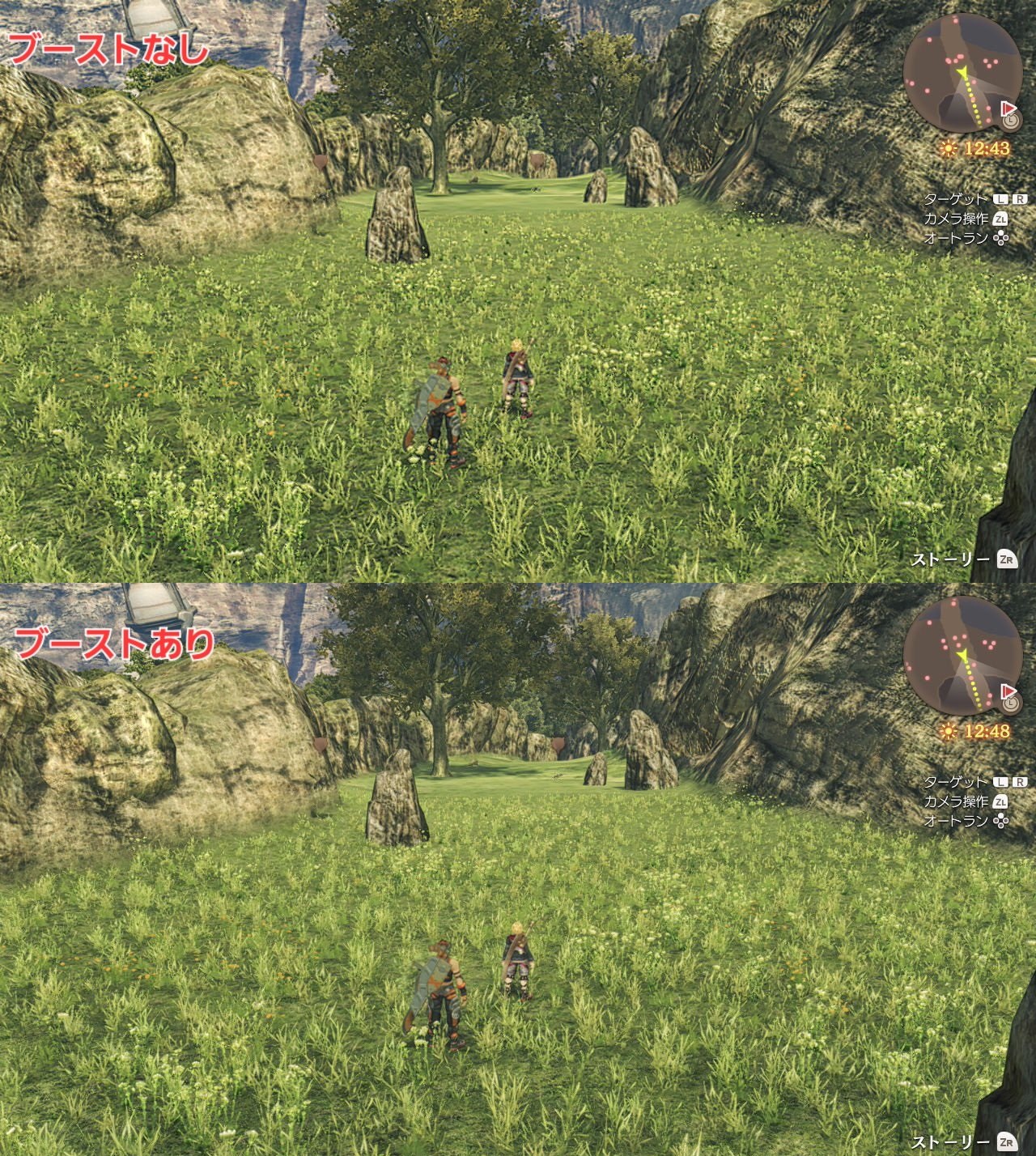 I hate how the SW2 takes the screenshot in 720p so it looks blurry and not how it looks on the actual screen. Still easy to see that it looks way better and that the aliasing isn't absurd like it is without the boost.