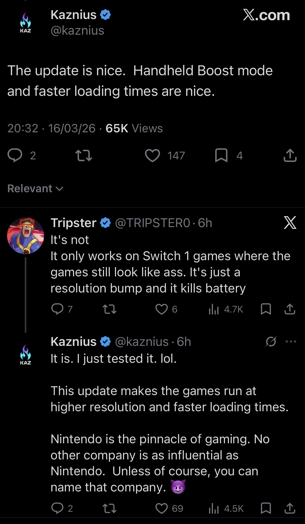 >>735135825>we went from "Digital Foundry said the Switch 2 won't be backwards compatible" to "why didn't they have handheld boost mode for Switch 1 games at launch?"