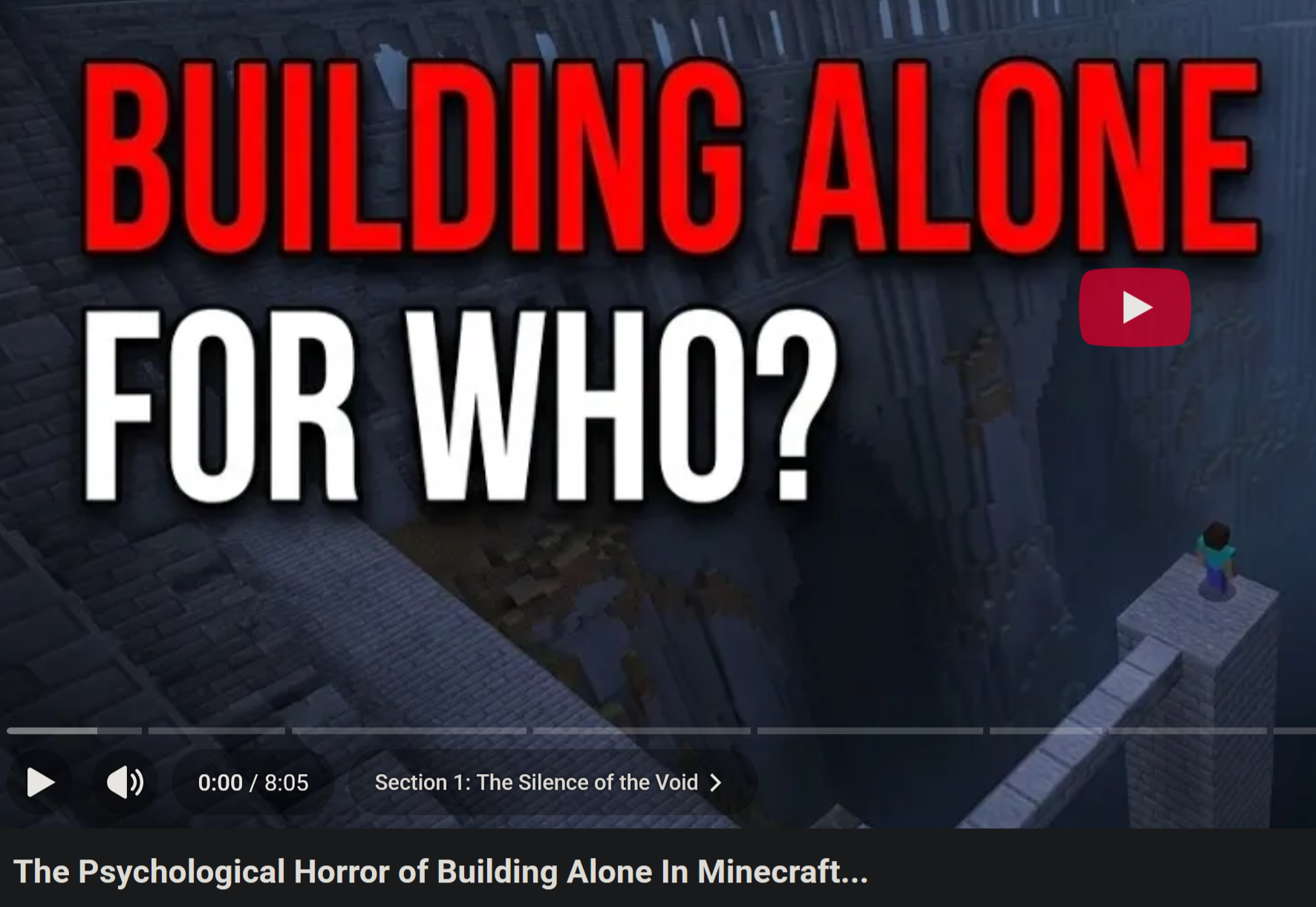 The weird thing is that Minecraft horror videos are always about not being alone, they're never about actually being alone.