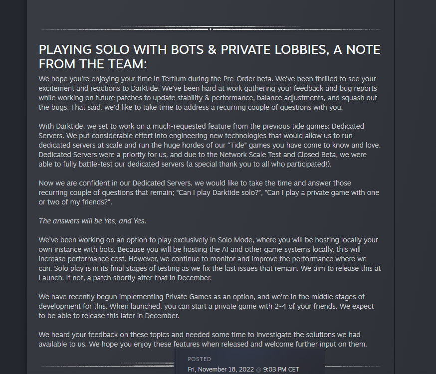 >>735141486>>735141849>>735141858Fatshark said they would implement solo with bots when it first came out as early access so they still fucking lied