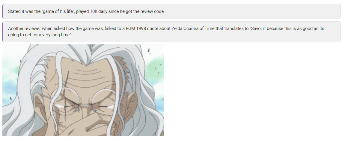 >>735147585They are correct. Fanboys overhype the games but Journos hate them and try to undersell them. They want western movieslop, Nintendo only puts out video games.