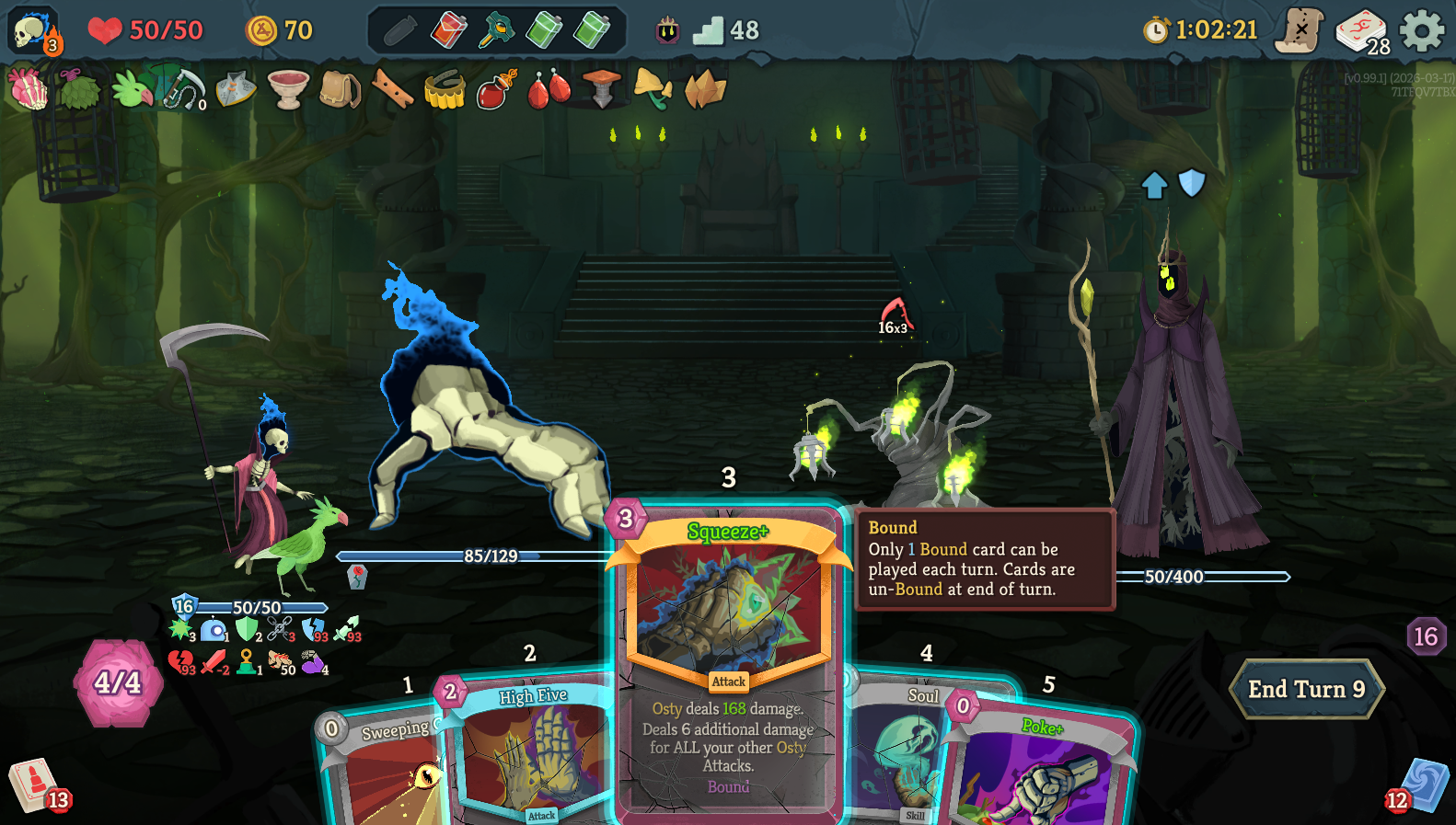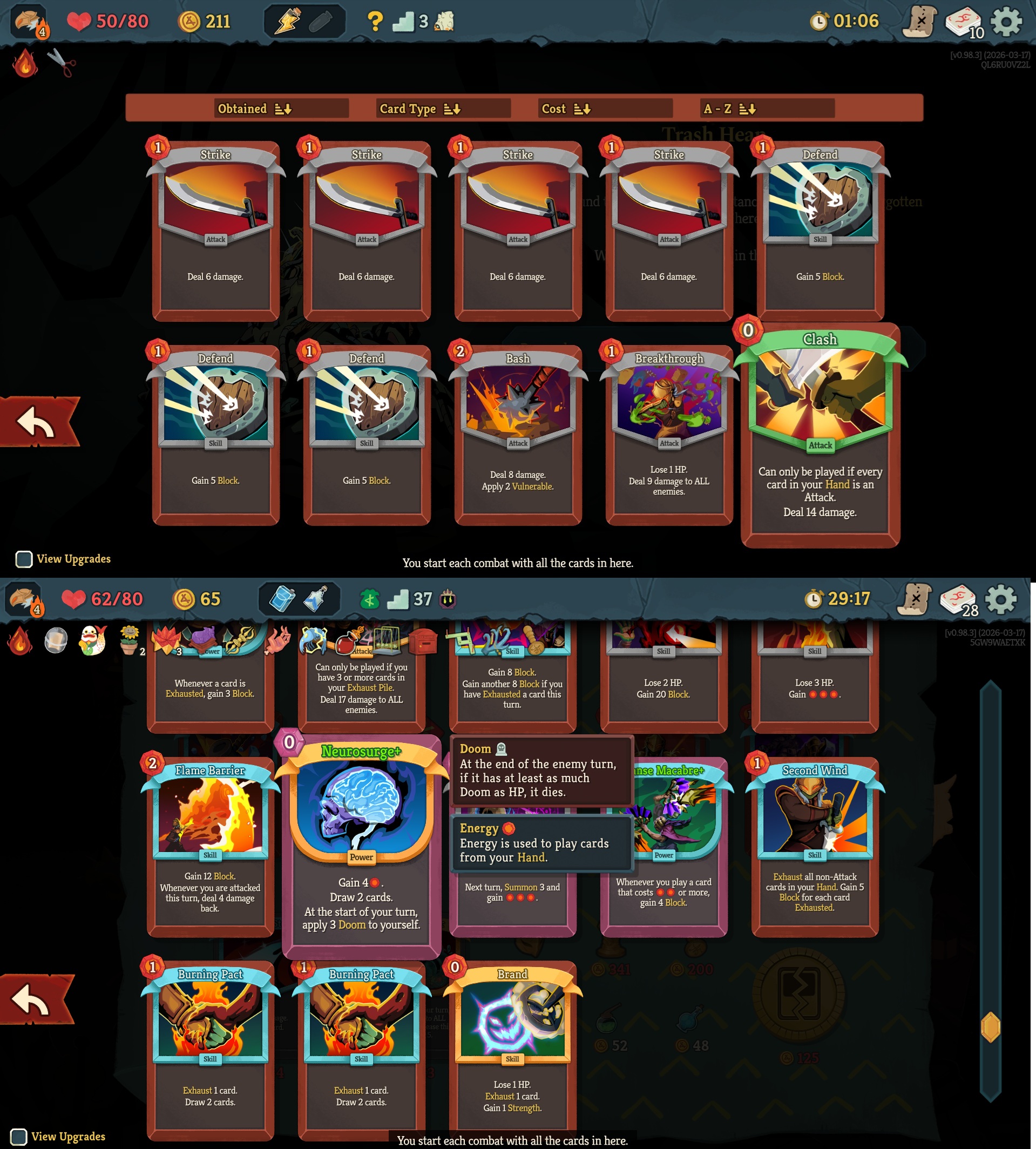 Had a really fun Osty run with Necro. Neow's transform gave me 2 Reanimates which made Act 1 so much easier, though it falls apart by mid Act 2 if you don't build upon it. I managed to remove Exhaust from one of the Reanimate and went all in with attacking only with Osty.