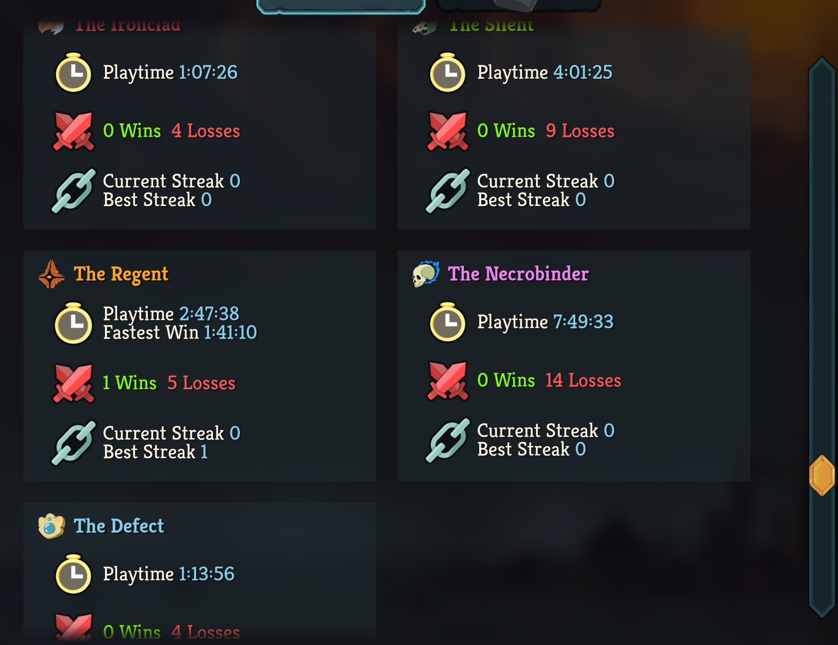 >>735179852Necrobinder is the strongest character by far. Has the easiest Act 1 and easily snowballs into immortality pretty soon after.I feel like currentlyNecro > Defect > Regent > Silent >>>>> Ironclad