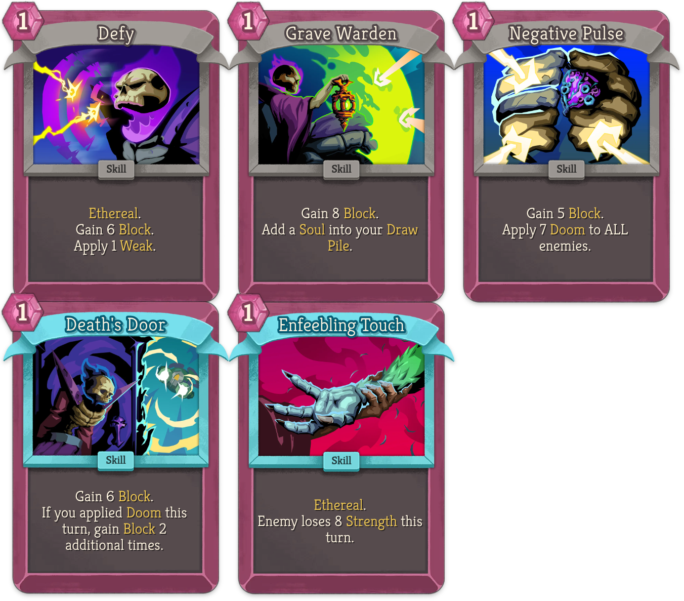 >>735177939You have the card that applies weaken and the one that generates souls hell even the one that generates a nice chunk of doom too.Necro has some amazing block cardsNecro has good block cards