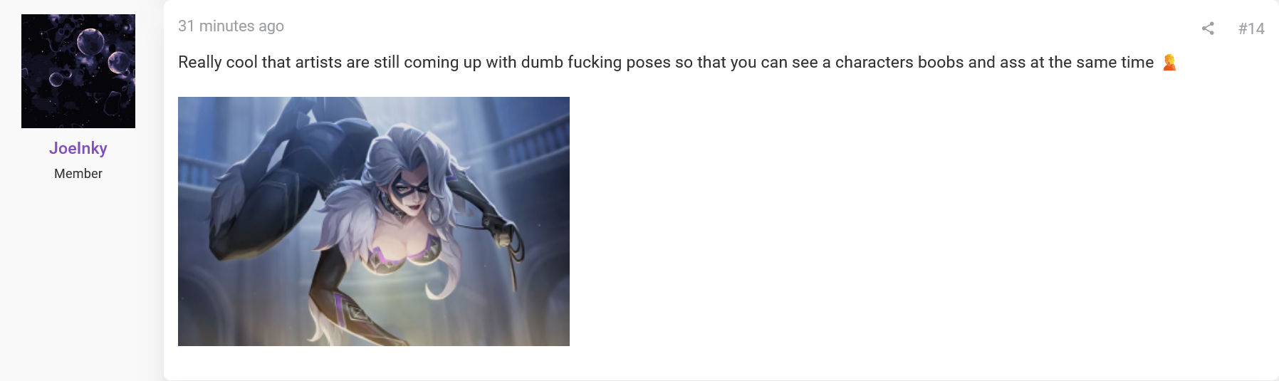 you're still having goon/coom bait worthy visual of BC in the comics, covers, etc...