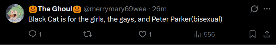 It's blatantly obvious that Marvel has an agenda where they need her available for Pride specials and queer representation, which means Peter's off the table.