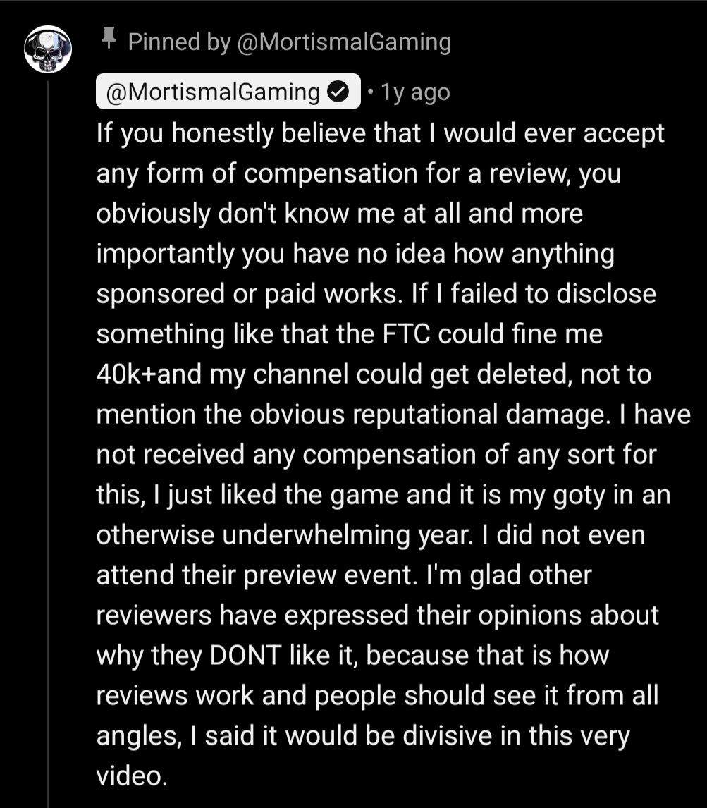 i guess the fact he never criticizes any games he reviews, even turds like DA Veilguard(his top game of 2024 at that time btw) makes sense now.