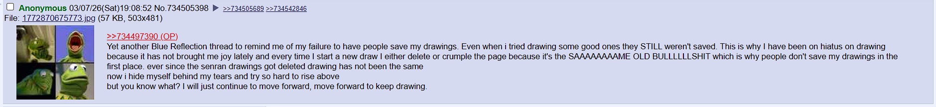 >>735164589No, he made this post in a recent thread. He won't post much now, *if* he posts in a thread, it'll just be one drawing.