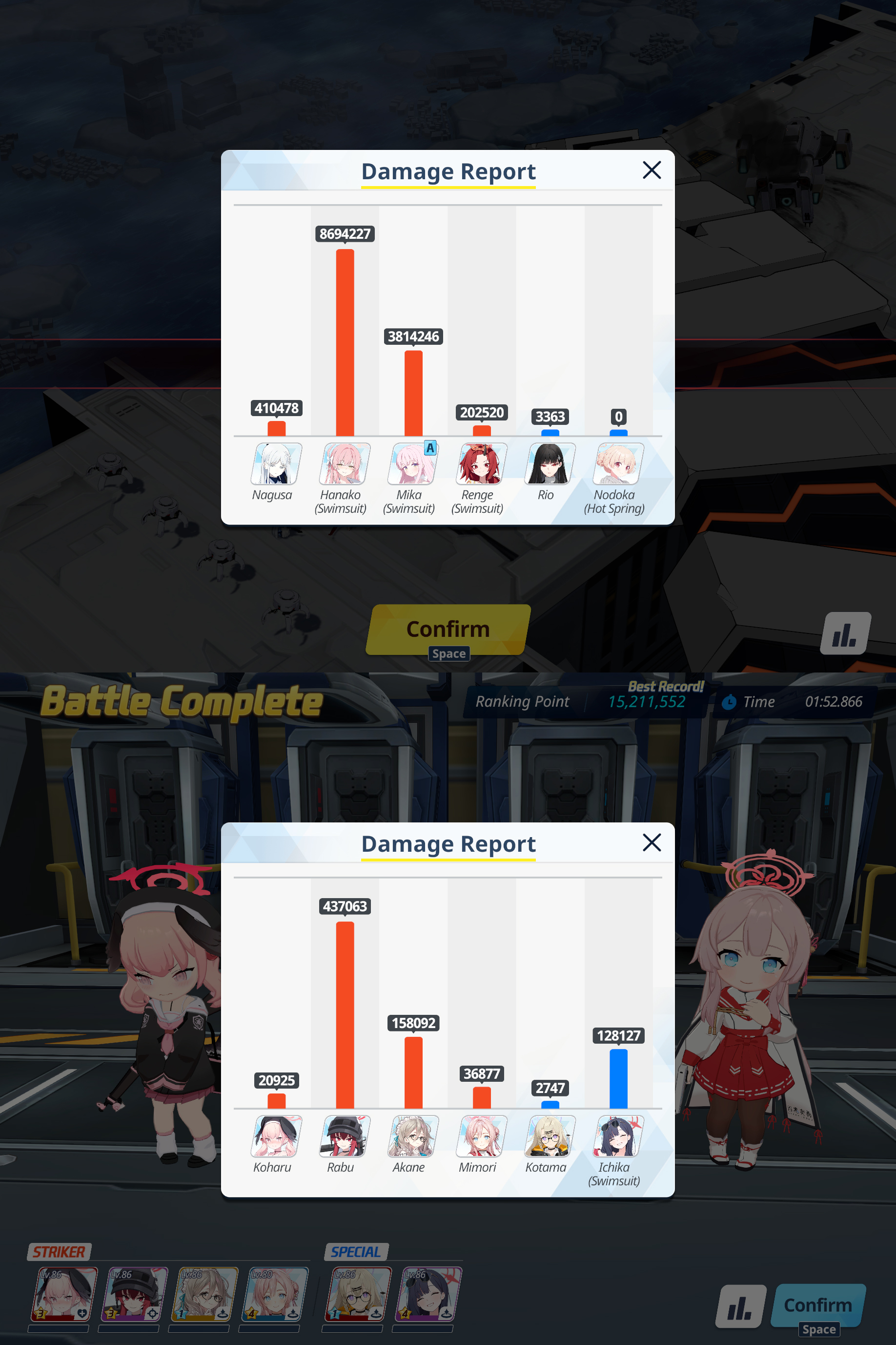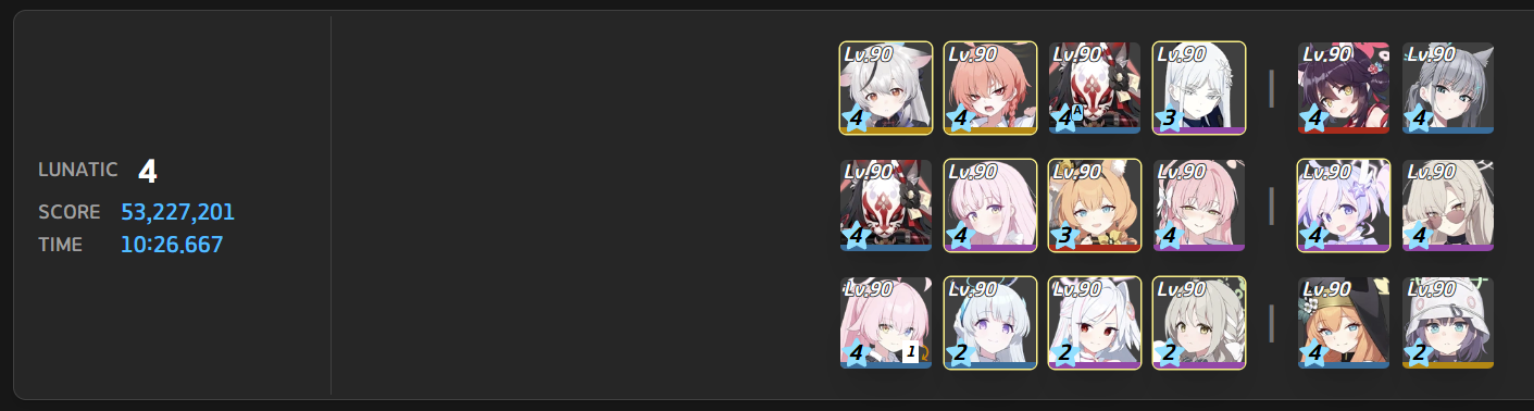 >>735189261I think the first phase could be faster if I borrowed Wakamo instead but I have an easier time not wasting cost with S.Mika and its not like I was anywhere near running out of time with my second team anyways