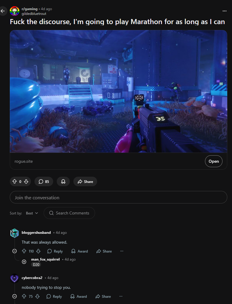 >>735236398Because "Im having a blast" is almost always the last refuge of cope from someone sloppily eating a sloppy shit game. Starfield is probably the most egregious example in recent memory.