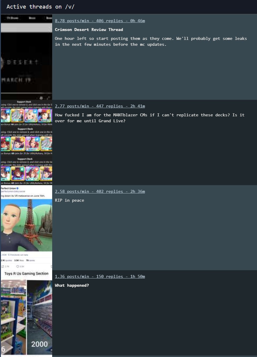>>735236362>>735236367>>735236374>>735236392>>735236397>>735236410>>735236416>>735236439>>735236451to be fair, this was screenshotted from the crimson desert reddit and it seems to have been purged already, there was no link provided, could be fake