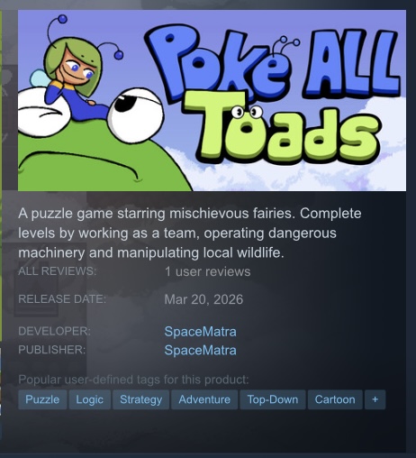 Fairy Friends, get in hereWe celebrating the release of Poke ALL Toads today.It will release in about 13 hours
