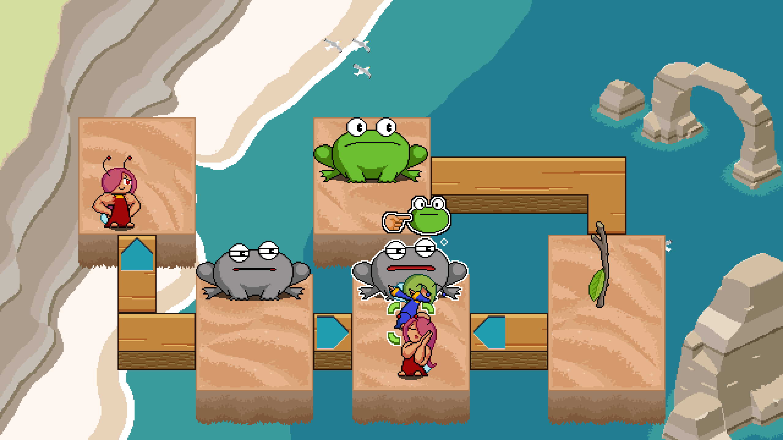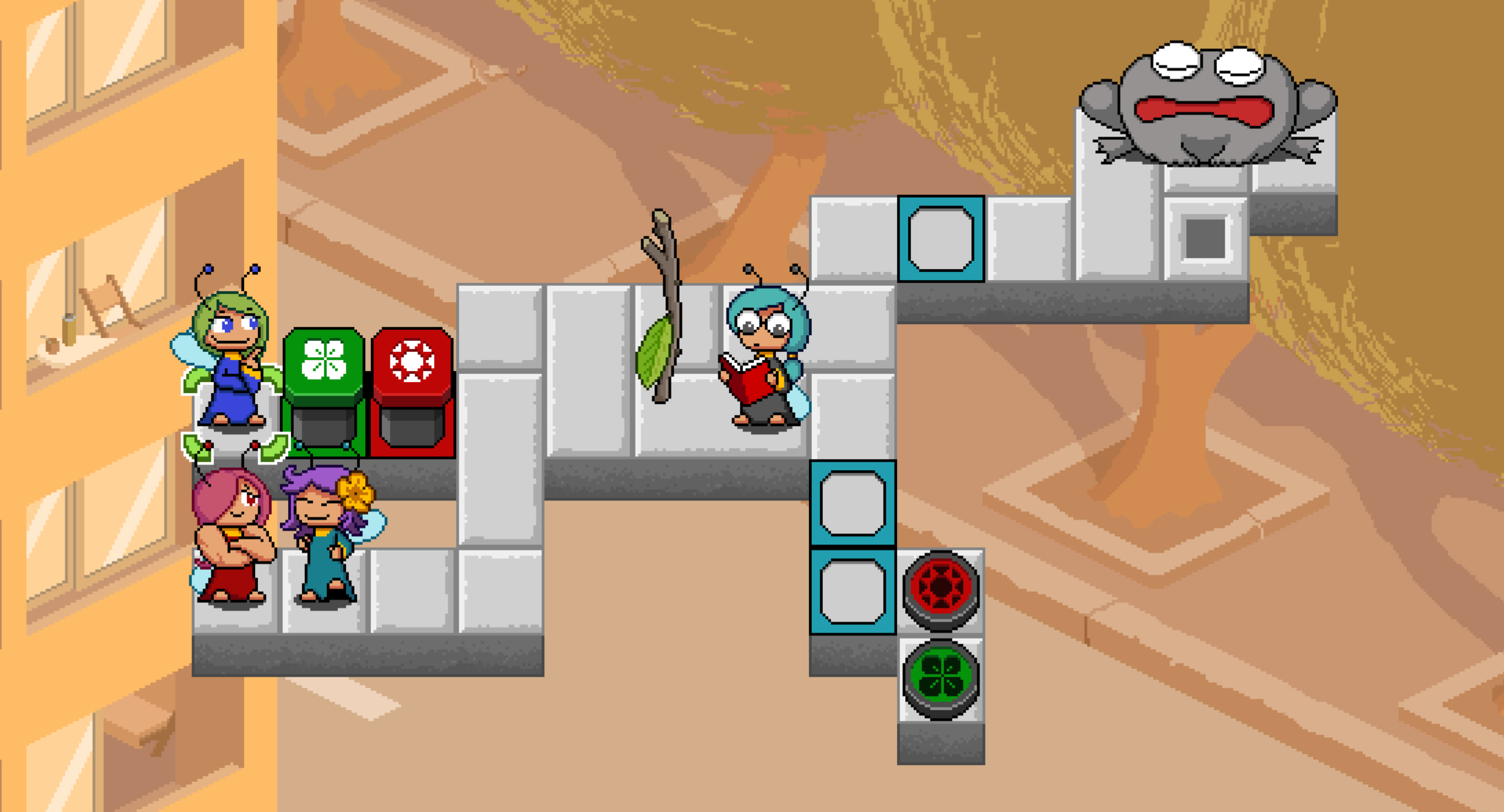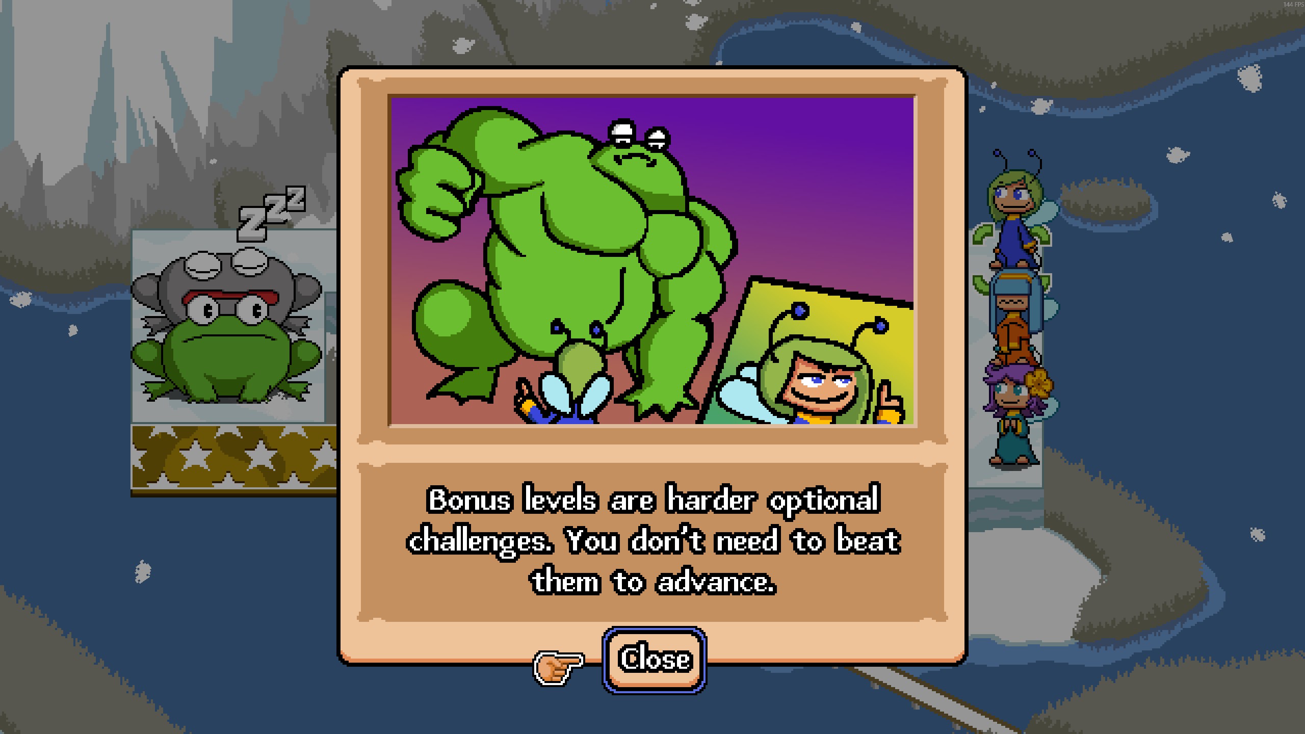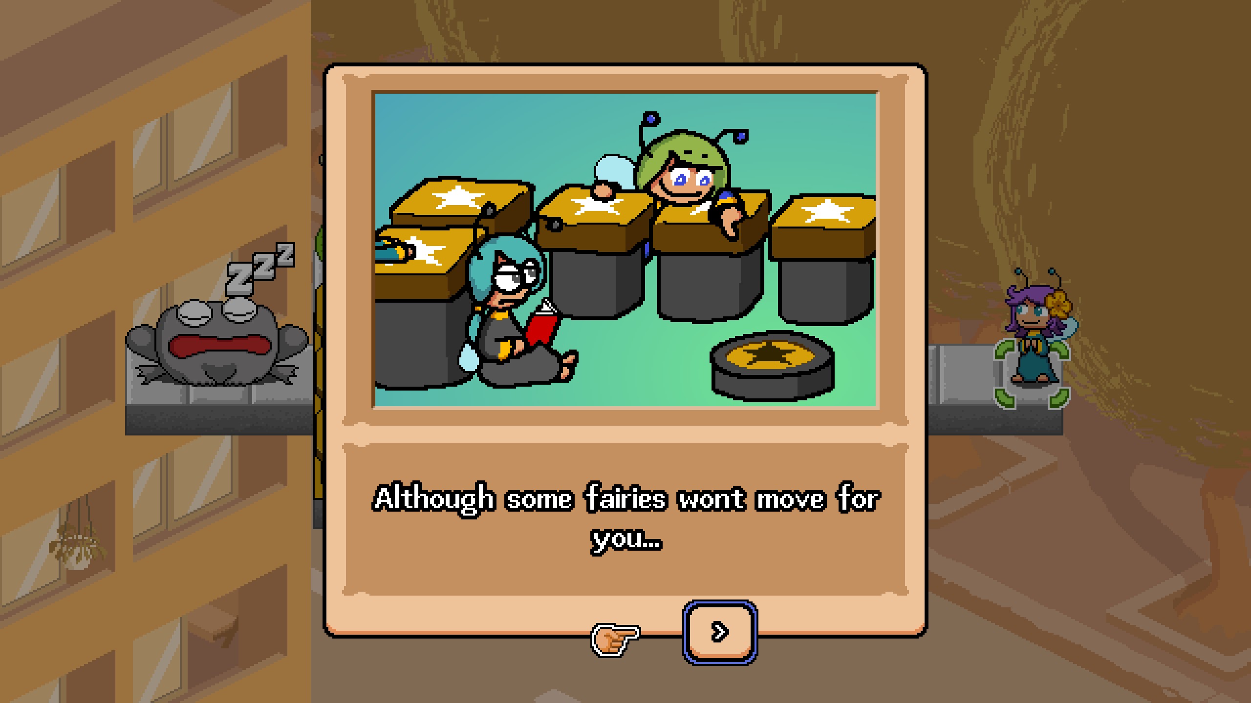 >>735337763It's a very 90s/AOL-Games-esque puzzle game with cute pixel art. You control fairies who have different quirks and abilities and the goal of the levels is to poke all the toads and then get to the goal whilst avoiding having your main fairy (who is the only one that can poke or activate the goal) being eaten by the toads (who get pissed off after you poke them).
