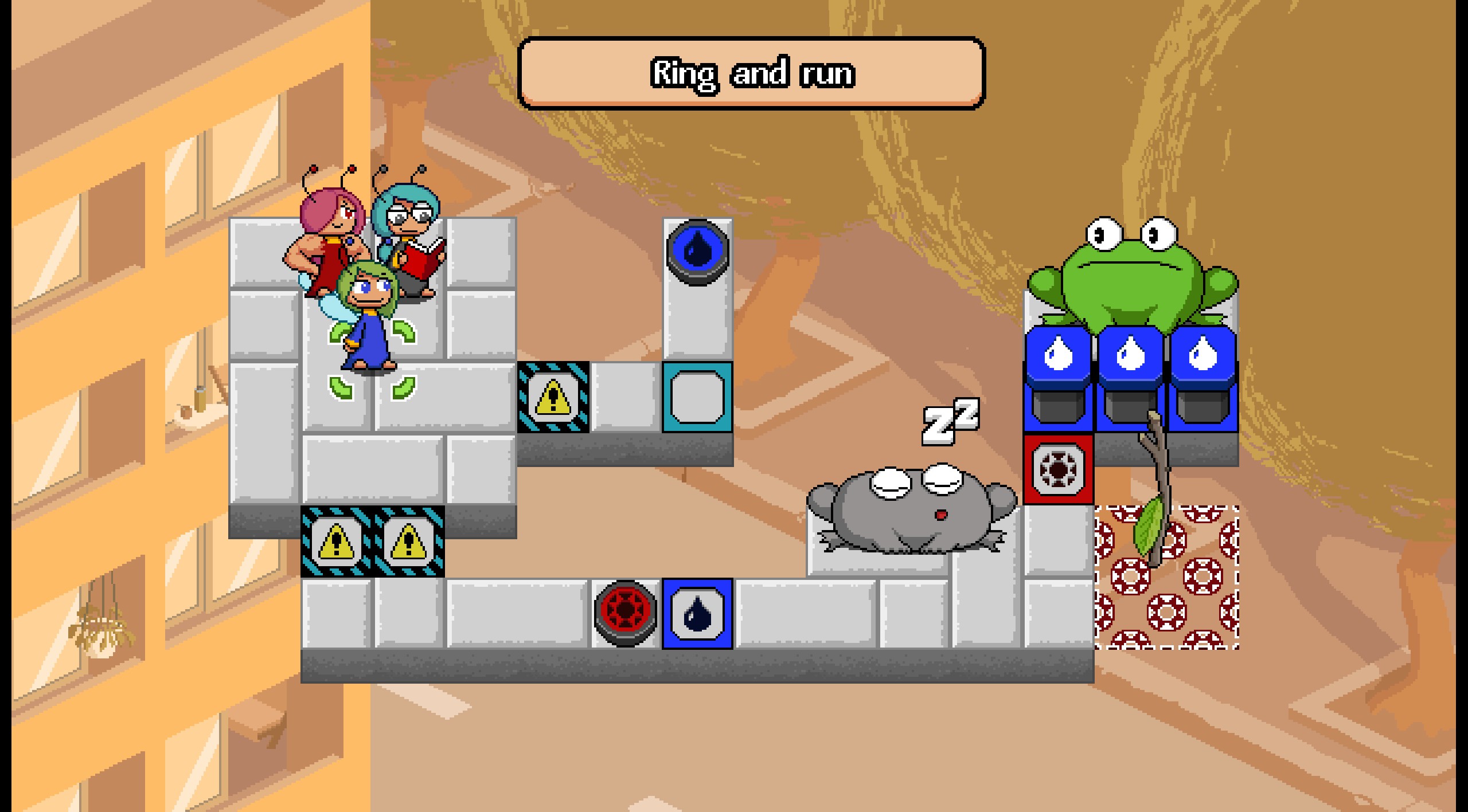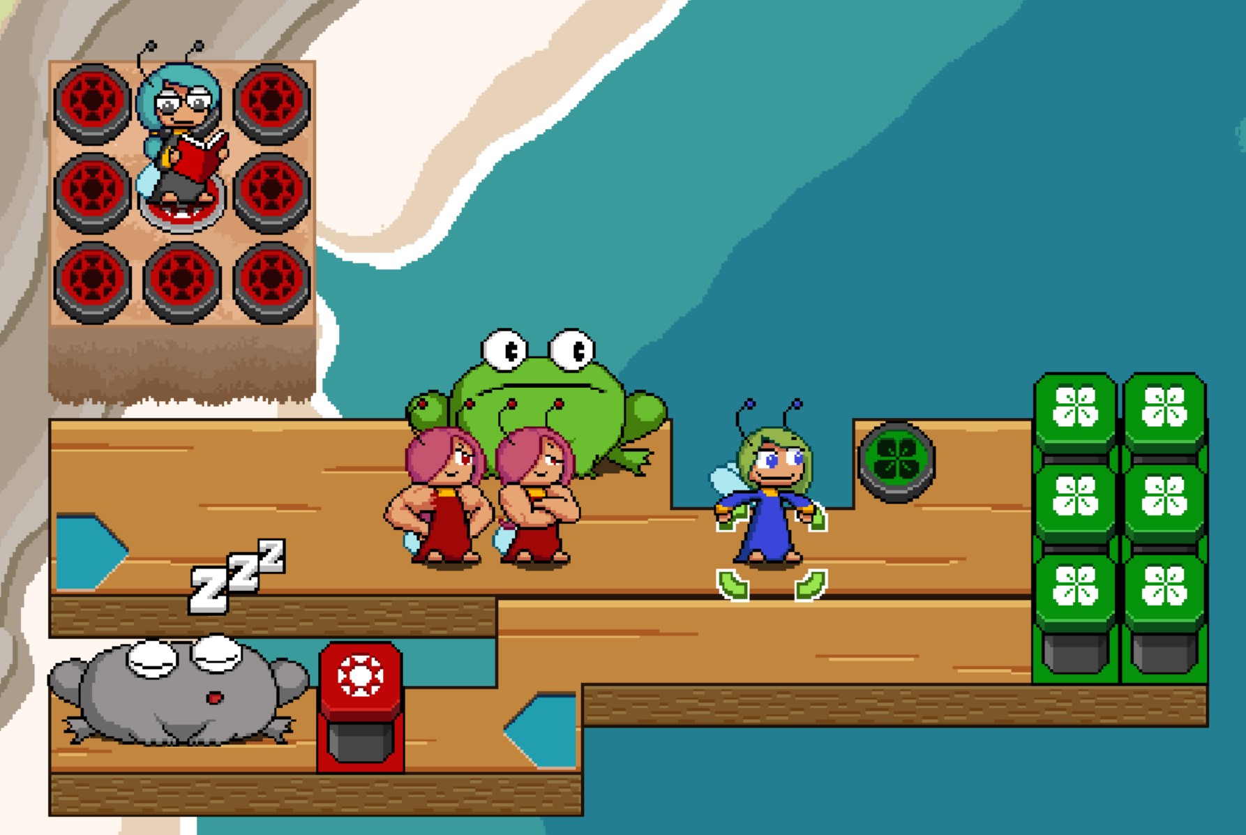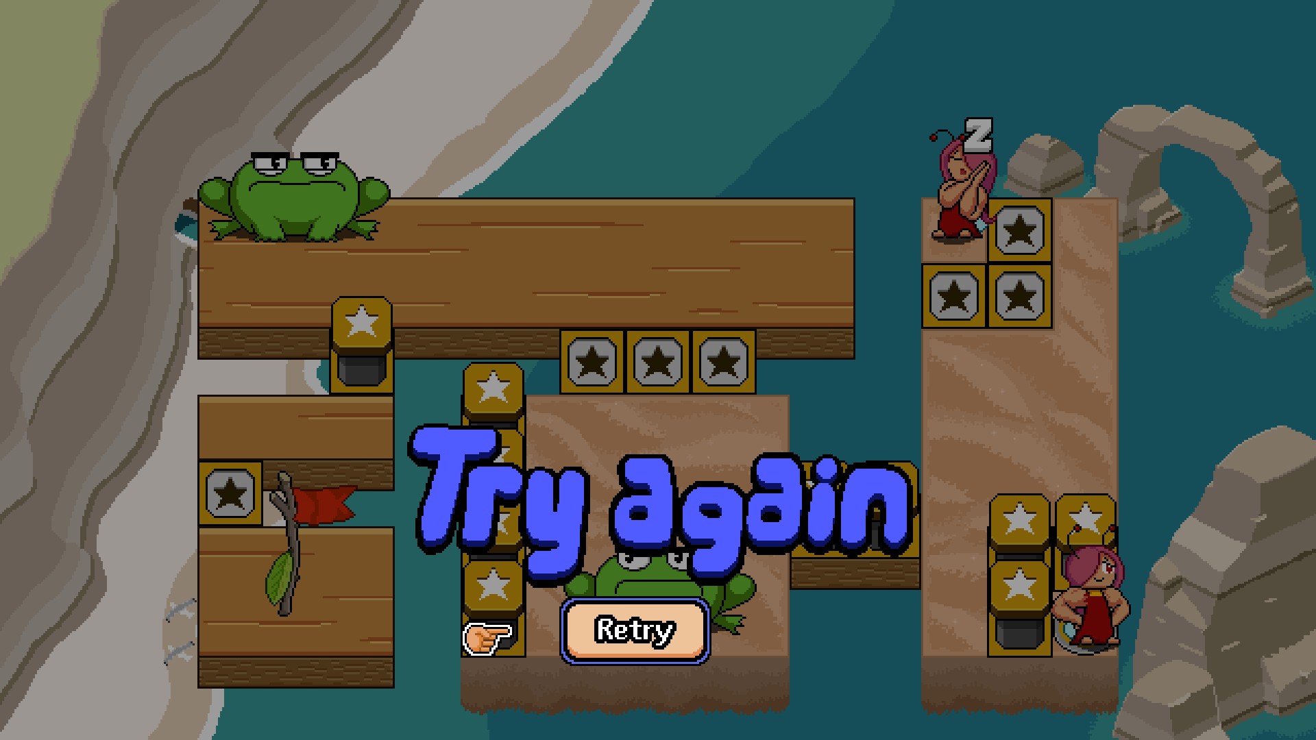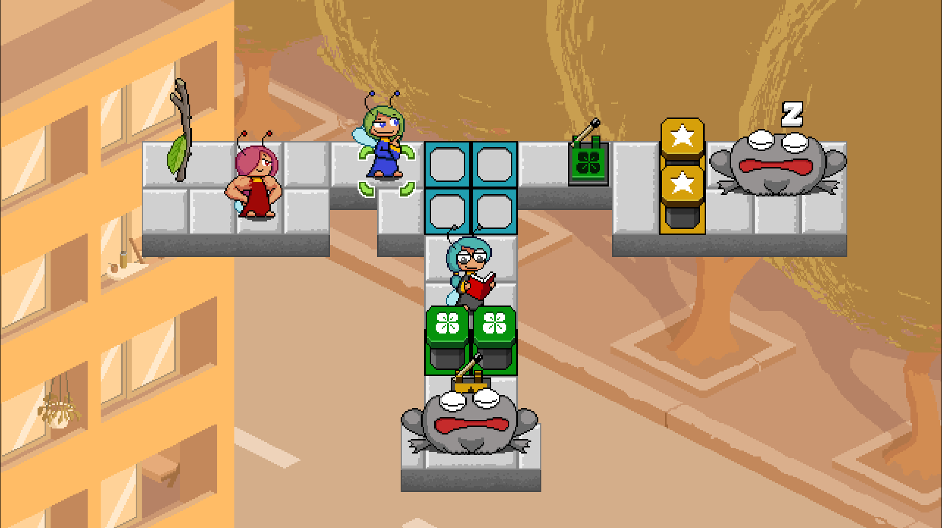 >>735337763It's a very 90s/AOL-Games-esque puzzle game with cute pixel art. You control fairies who have different quirks and abilities and the goal of the levels is to poke all the toads and then get to the goal whilst avoiding having your main fairy (who is the only one that can poke or activate the goal) being eaten by the toads (who get pissed off after you poke them).