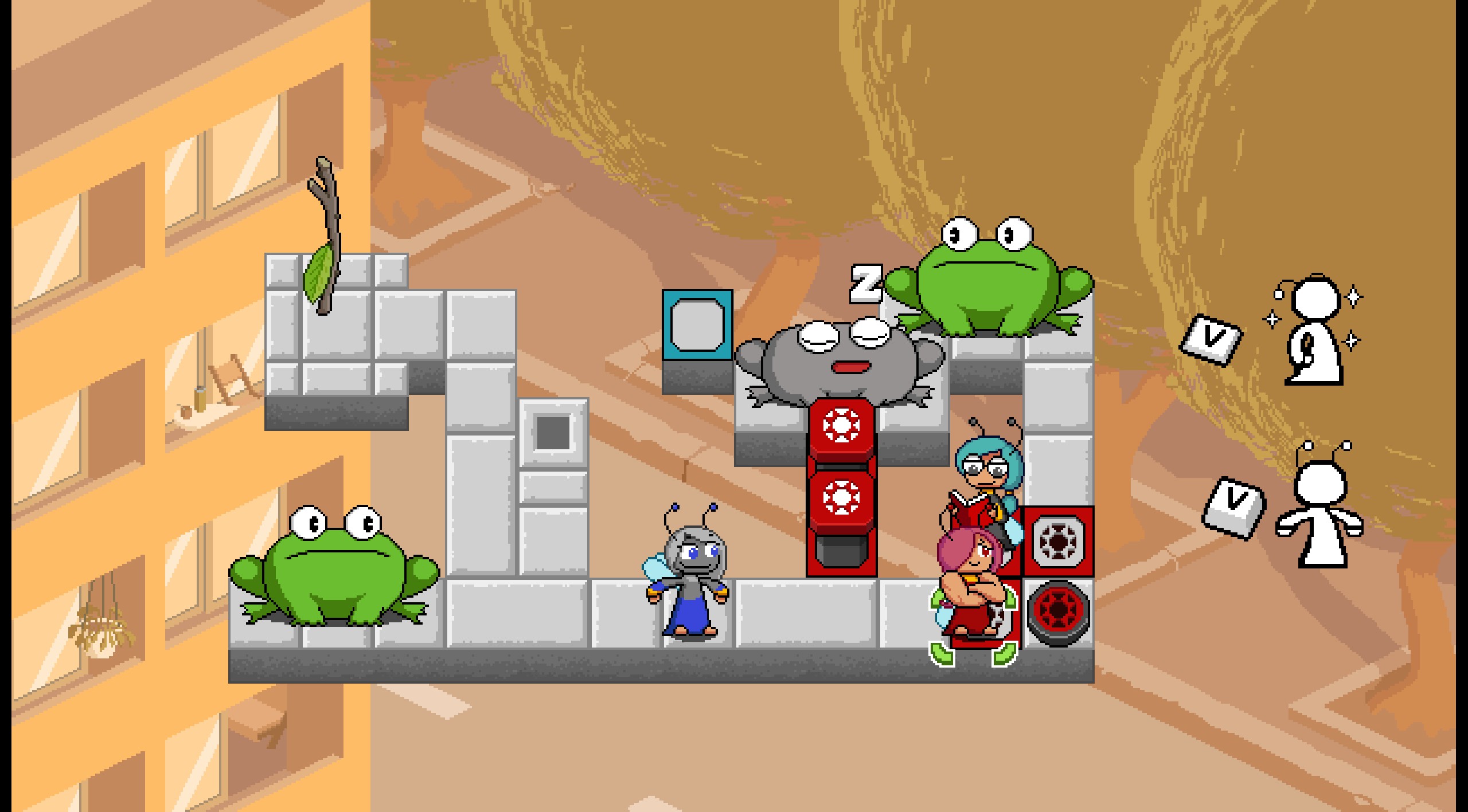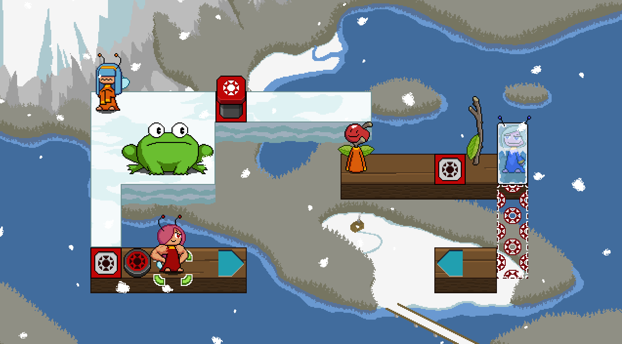>>735394952In this situation, I want to throw Busy to the left to "drop" her on red switch. Then I can move Strong to the green switch and the level is solved from there. But I can't make that throw so I'm back to square 1I'm also pretty sure that marker under the toad has to mean something but I can't conceive of a use for it