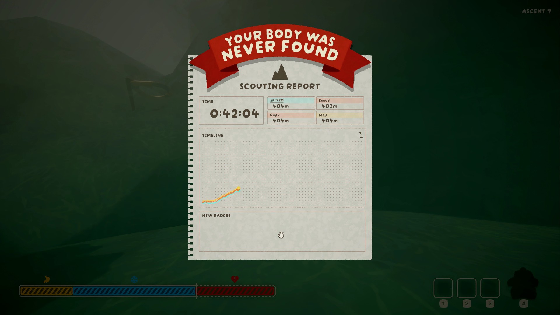 >>735564860I think that if I aimed the claw just a bit higher I could've made it. You can actually see the campfire smoke for a moment before I fall back down. So close yet so far.