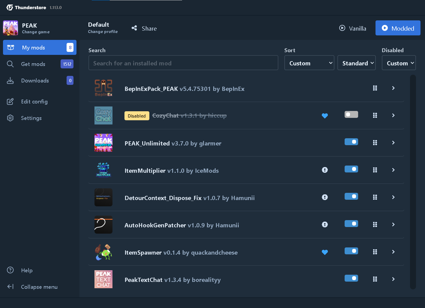 4p textchat dailyneed: thunderstore.io/c/peak/p/AppliedAffliction/NoStatusDecay/Mod Config: only Drowsy is True>steam://joinlobby/3527290/109775243523620155/76561197997194879