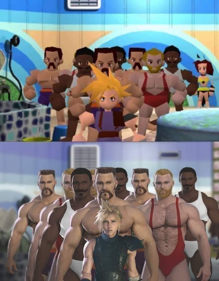 reminder that cloud got gang banged by 7 muscled men, 3 of them BBCsthat is 100% canon unlike all the shit you make up about tifa and aerith