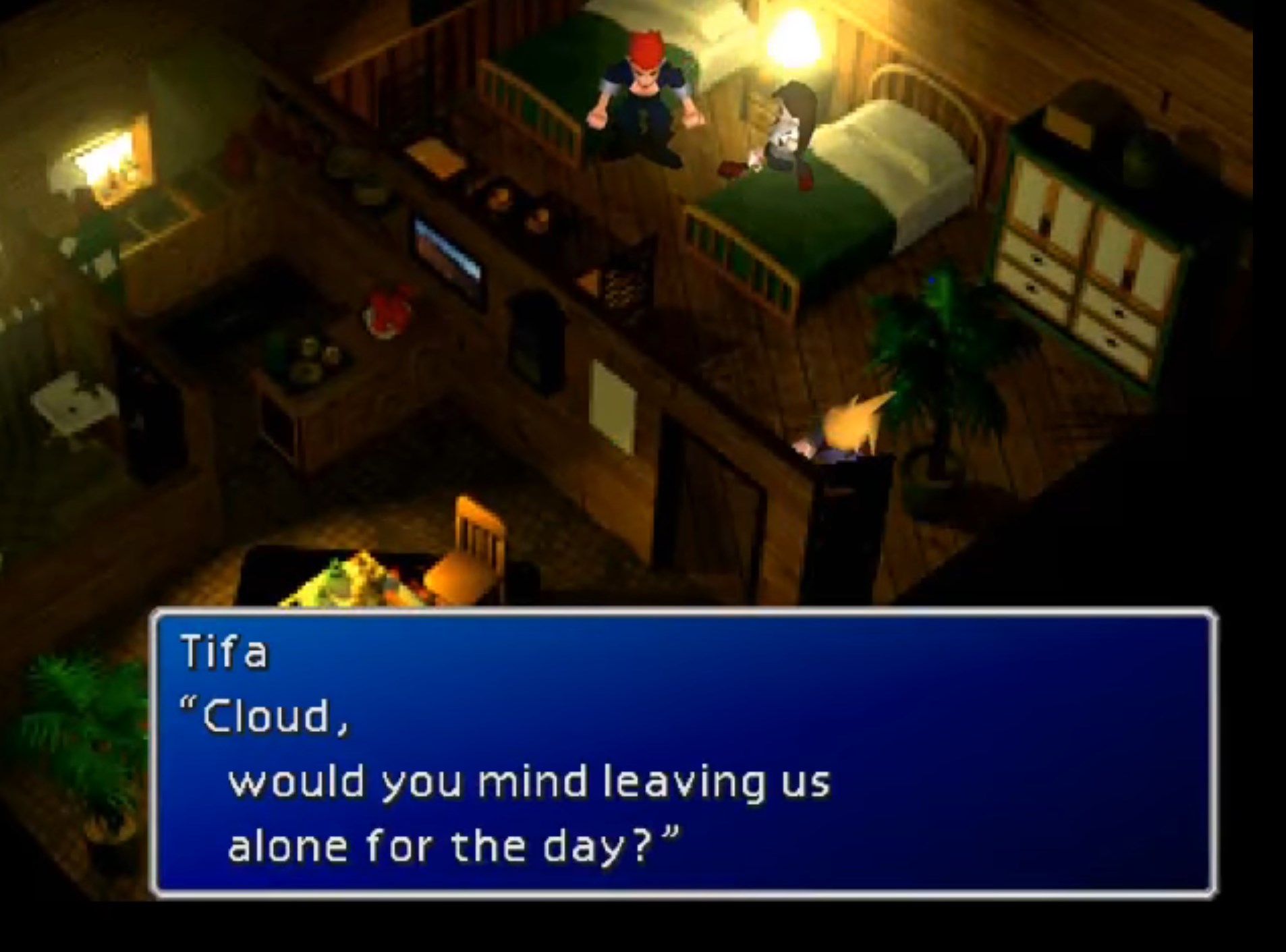 >>735425465>Cloud and Tifa think the rest of the party went off to be with their families/friends as they await the final battle>in reality they were on the airship watching the whole time