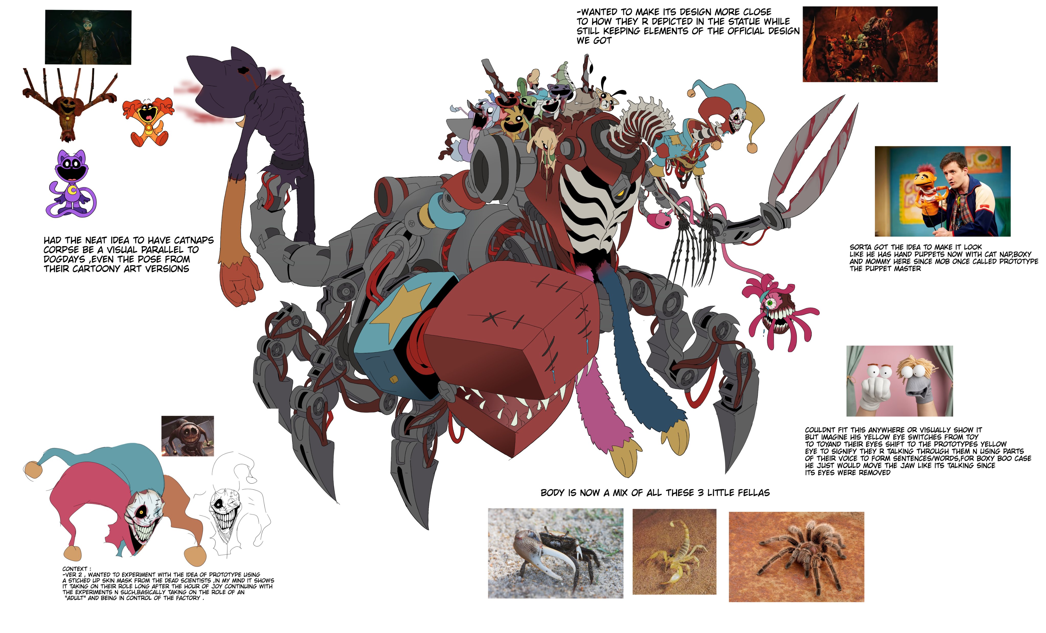 >>735585046Boxy exists as a tease for The Prototype. He's the first successful creation of the Bigger Bodies Initiative, Sawyer's attempt to rediscover how Elliot created his toy children. Making him a jack-in-a-box was to deliberately tie the two since in-universe the scientists were initially just trying to recreate The Prototype.>SpoilerWish they did something like that, or maybe say in chapter 5 you've just escaped some enemy and are hiding in a test room. Then from around the corner, the head peeks out at you. It just looks strange, and keeps its distance at first and The Player doesn't react too frantically to it. Then the claw shows itself, then the whole thing sprints around the corner and grabs you, giving you a full shot of it's mangled body of metal and monster corpses.