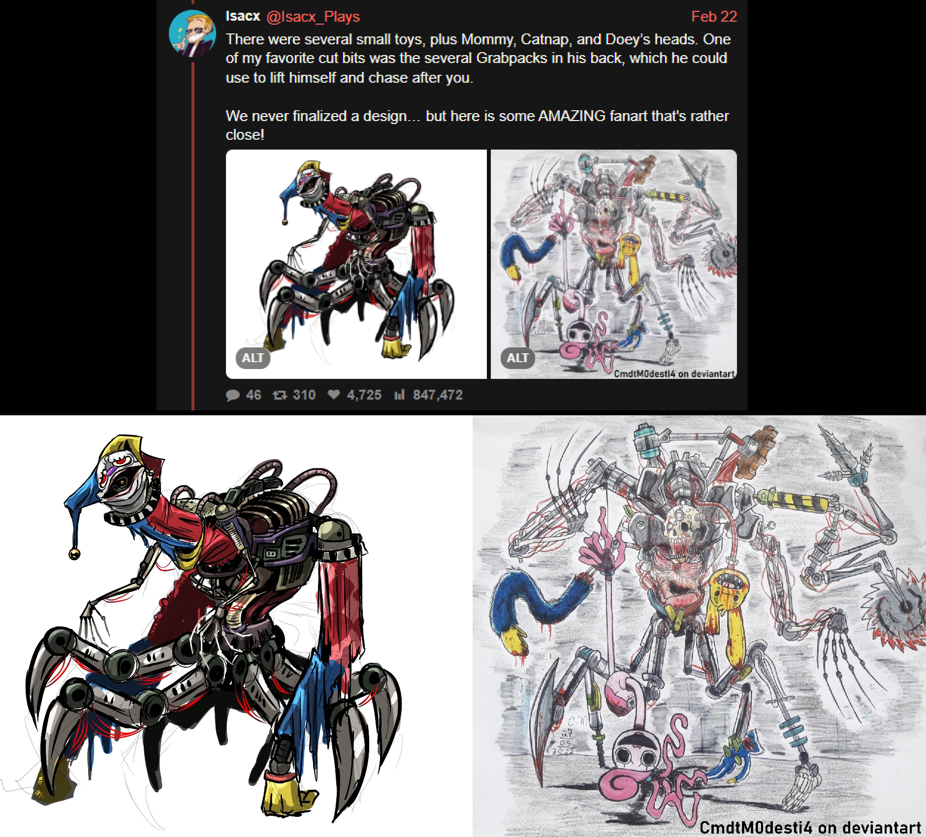 >>735505751Yeah, part of me would have really liked to see the original design the original director had in mind. He was supposed to be a bit smaller, look more like the Catnap shrine and even use grab packs to move around.>>735507083I don't understand this mentality. In regards to the original design that planned to lean more into body horror I've seen some people say stuff like "but what about his toy form?" or "how would that be okay wandering around the factory?!" referencing how he would meet with Theo.It's like people forget that he was never supposed to be a toy or marketed as such, let alone be known to anyone at the company. He was locked up in containment and would stay that way forever. The only people privy to his existence were those that knew about the human experimentation the company was keeping secret.He never had a name like "Poppy Playtime" or "Huggy Wuggy". Just "The Prototype".