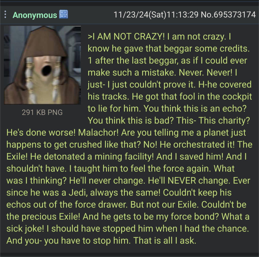 >>735526465buddy i don't know if you're aware of this but i'm gonna tell you somethinyou're a random 4chan guy toothat's the whole point of the site