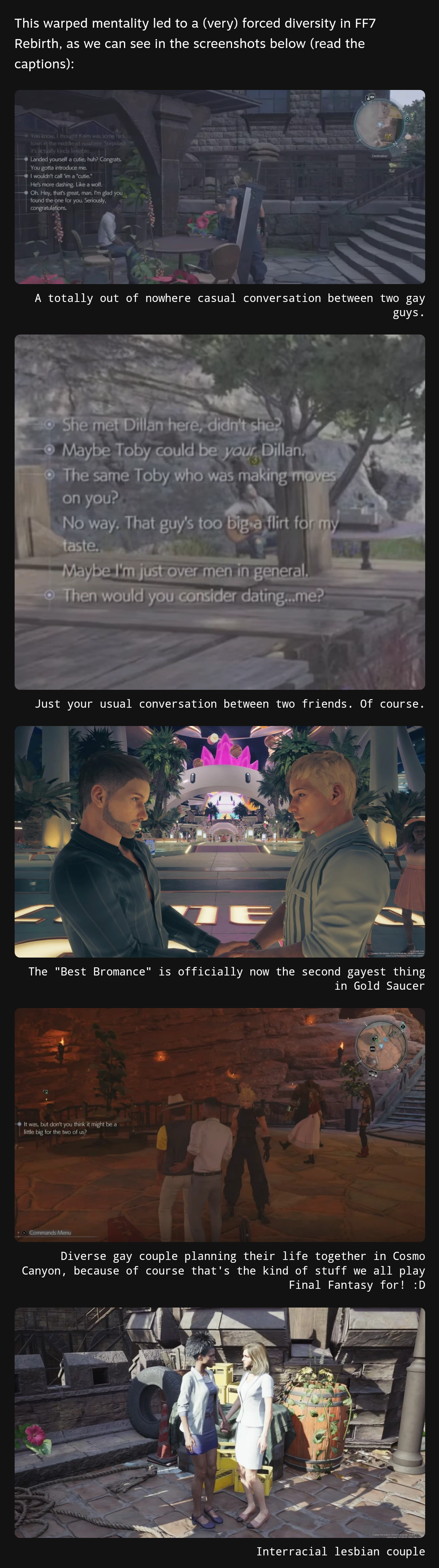 >>735572867>every game since the ps2 gen has been dog shit>new games take 6+ years to come outMaybe don't spend 10 years making a trilogy of a remake of a game no one under 30 gives a fuck?Rebirth should've been one game