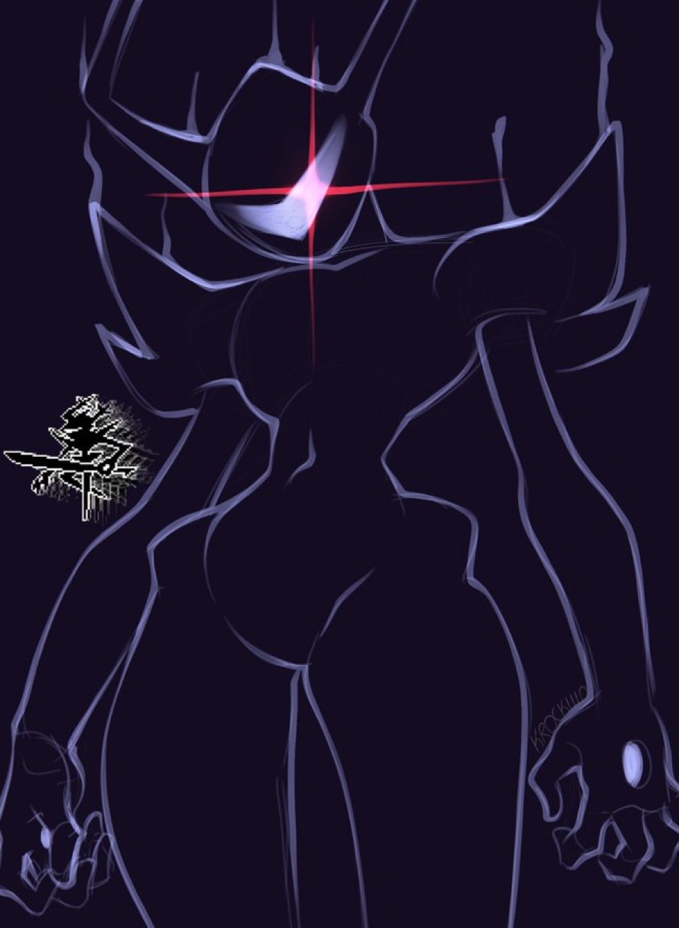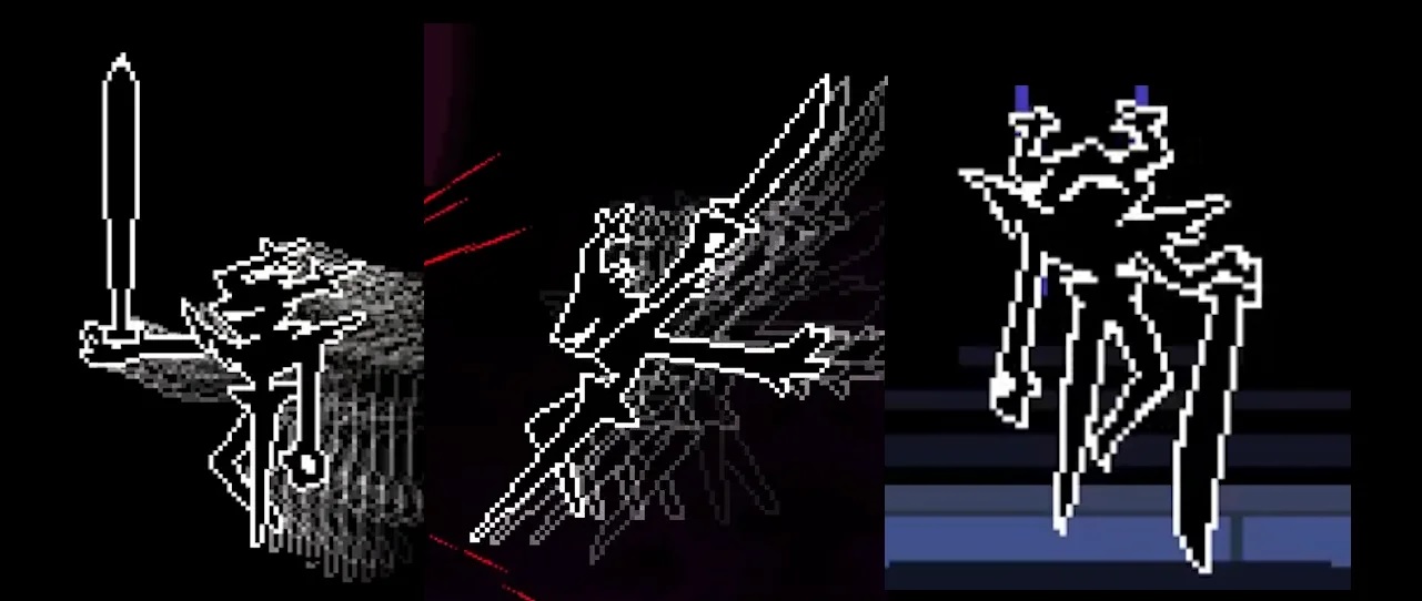 >>735588873>Why is Dess doing all of this? Because Kris told her too>she should easily be able to reintegrate her back into society and reunite her with her familyShe can't talk, doesn't seem completely same, and her metaphysical state actively degrades the border of reality and fantasy. >How did Dess become the roaring knight. She's a darkner made from Dess (alive or dead yet to be determined) who Kris gave his soul to. The armor is crystalized determination from the overwhelming SOUL power (this last detail is not in the game yet but has been leaked for chapter 5). >Why does the knight resemble other undertale and deltarune characters? It doesn't. It resembles the Holiday family and nobody else.>Speaking of it being an it, explain why the knight is referred to with it/its pronouns and not she/herBecause the people know the knight is Dess are hiding that they know as much about the knight as they do. >Explain how the knight is able to transform with the ease it does if it really is just some lightner under the mask. It's not.>How did Dess become physically strong enoughKris's soul>Why does the knight hurt Kris It doesn't, it honors him>How does Dess go unnoticed in hometown as the knight?Literally hiding in the shadows. And sometimes closets>Why don't we see Dess's face under the mask during the knight's roar or the rest of her body? There is no face, that's just what she looks like presently