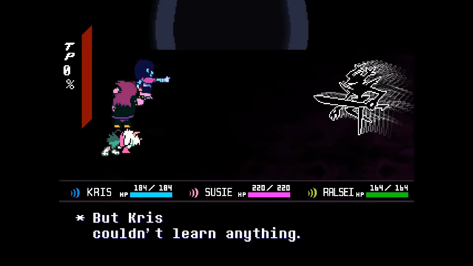 I wonder if the "Noelle is actually supposed to be your party member instead of Susie" theory will be verified soon. Or if it's going to take forever to be mentioned in any way. We've got 5 chapters of dialogue that shouldn't exist and the narrative continues to lead into something where Noelle forces herself into Kris's party, so it'd be an actual dick-crusher to save it as some last-minute reveal.Fuck, imagine the 7 year olds in 2032 who get to just play this shit from beginning to end without the hassle.