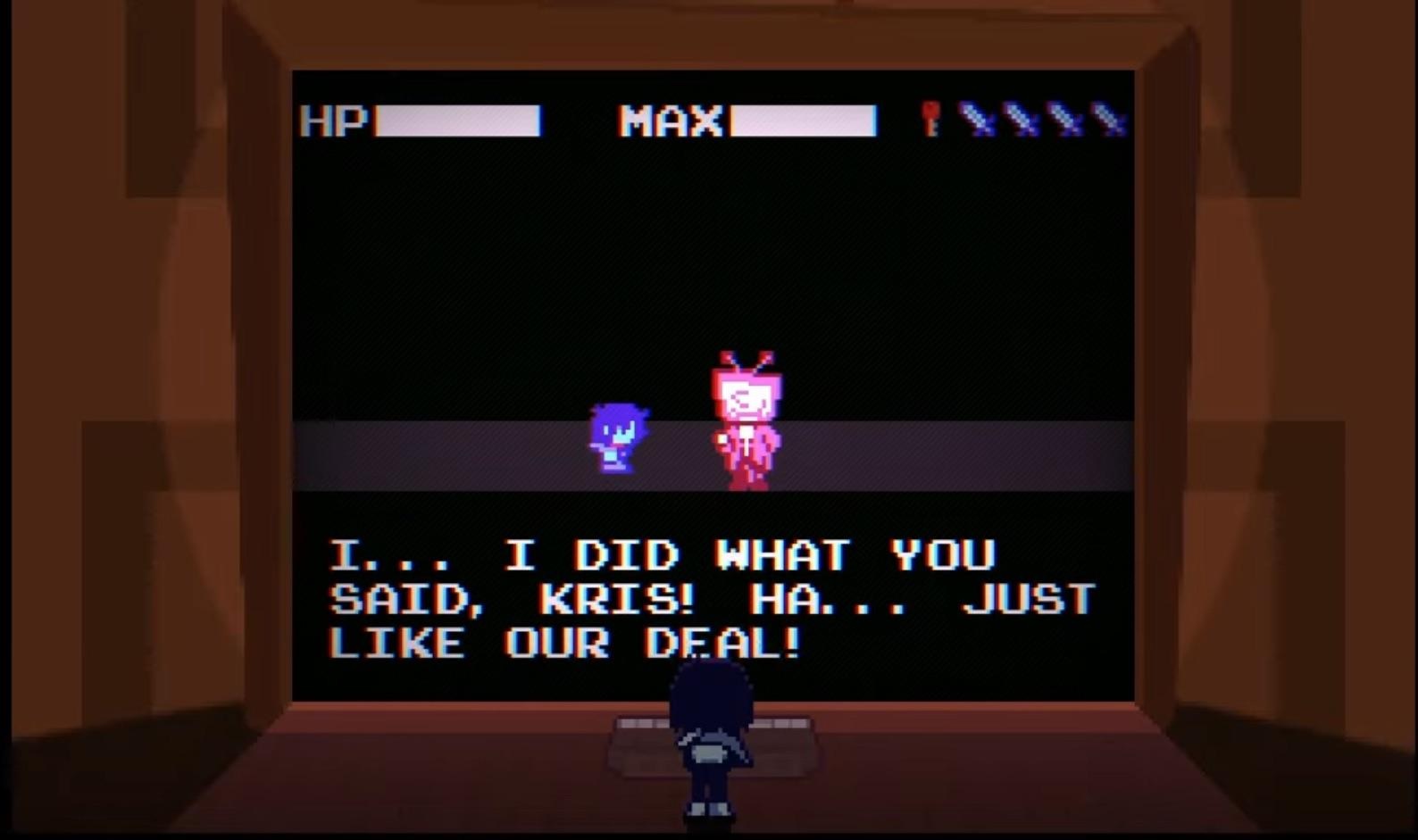 >>735582836>>735583084This isn't Undertale. Monster and humans are both "Lightners." Their souls produce enough Determination to create Dark Fountains. There's nothing special about Kris's compared to Susie's or The Knight's.For the same reason, The Knight doesn't need a human SOUL. It's can just be Dess.