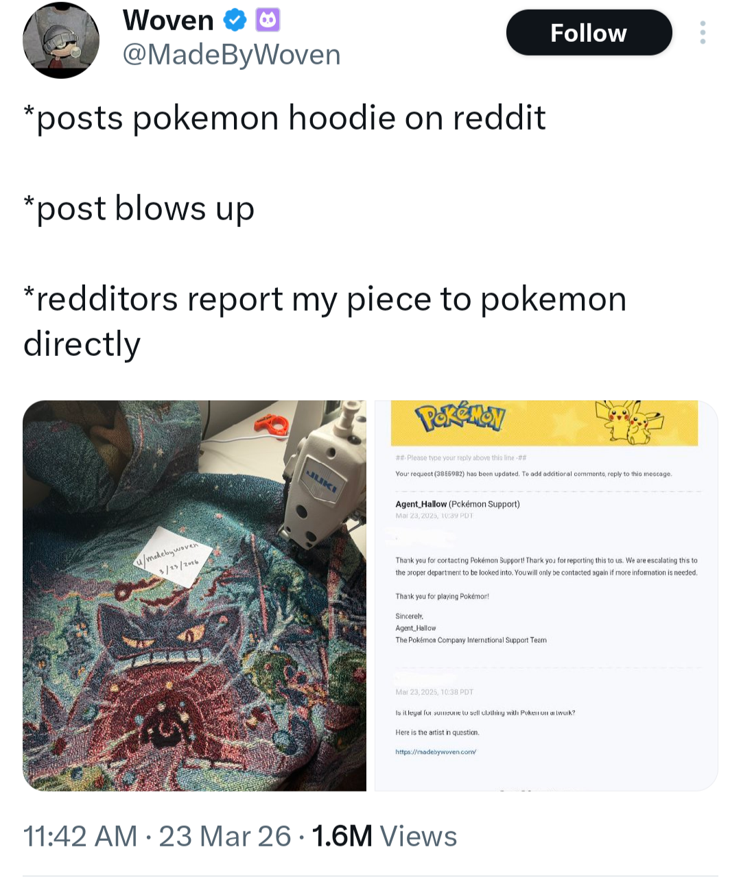 >>735593560Tried to make a business selling clothes with pokemon designs.