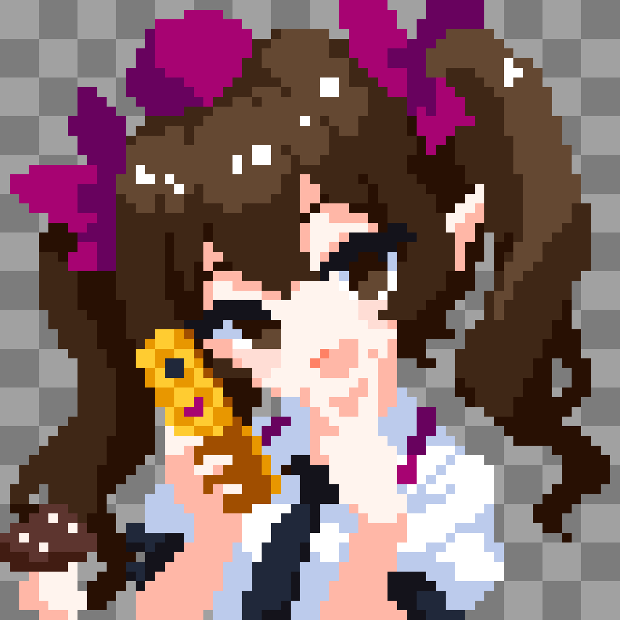 Please draw sumireko dressed as pomni