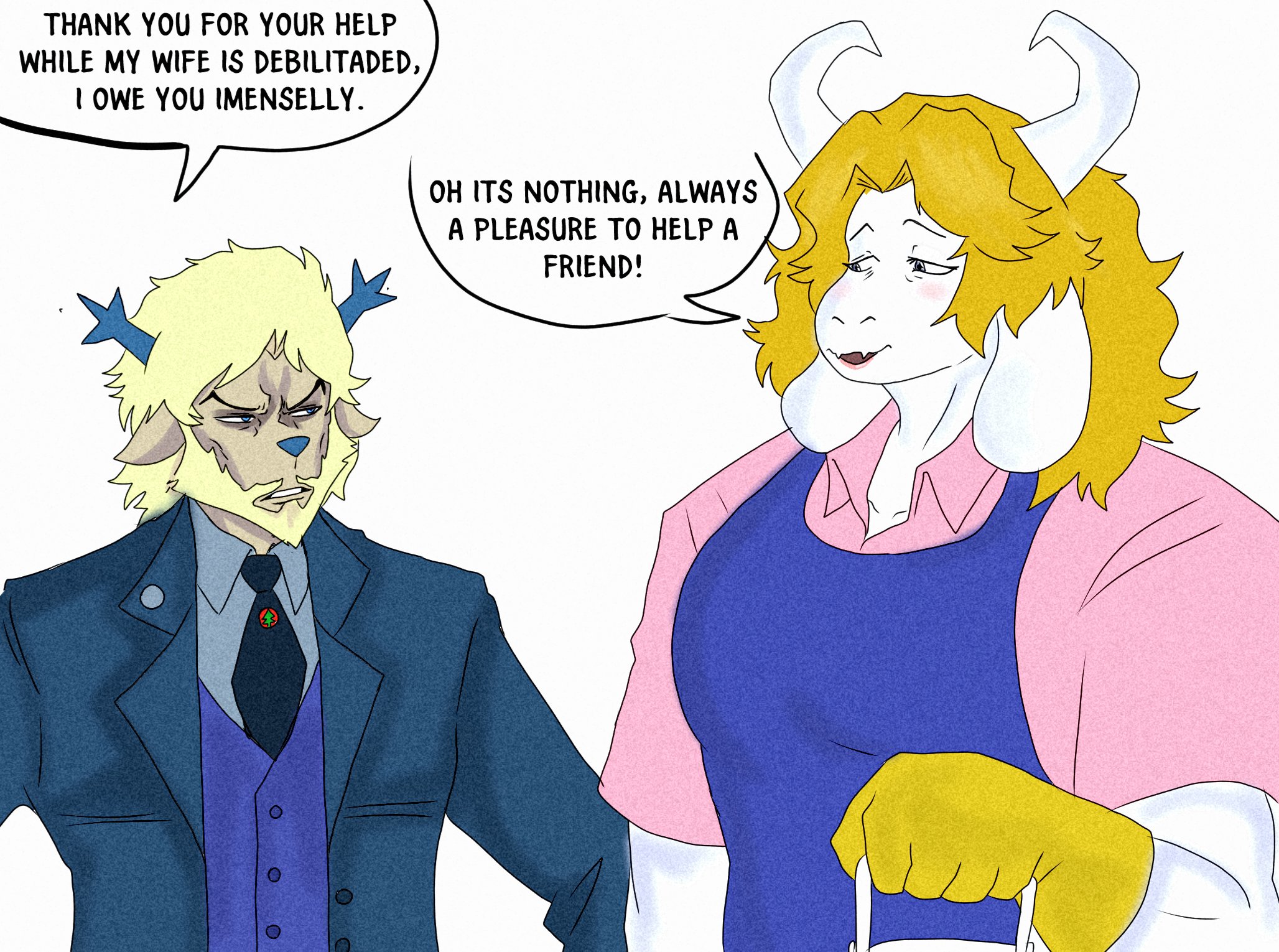 >Asgore will take the role of Sans as the sidekick of the flowers and the one they want to impress