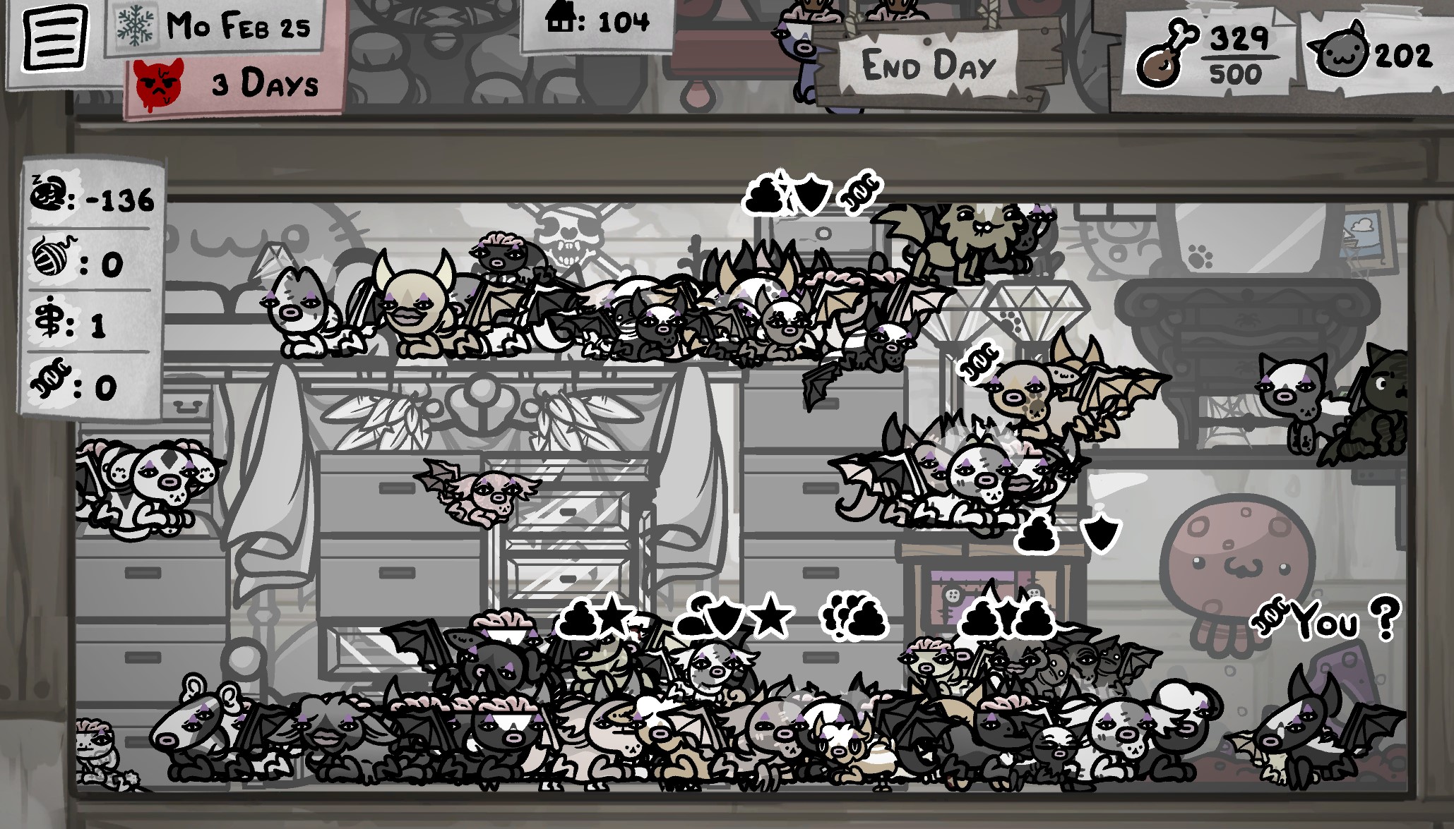 GUYS I NEED YOUR ADVICEI'm getting stressed out with the amount of subpar cats I have. I have like 60 cats, 4 rooms and they all seem to breed cats with like 2 maybe 3 natural 7 stats but the other ones are pretty mid. I dont know how to fix this. Would it really set me back to clean house and start over?