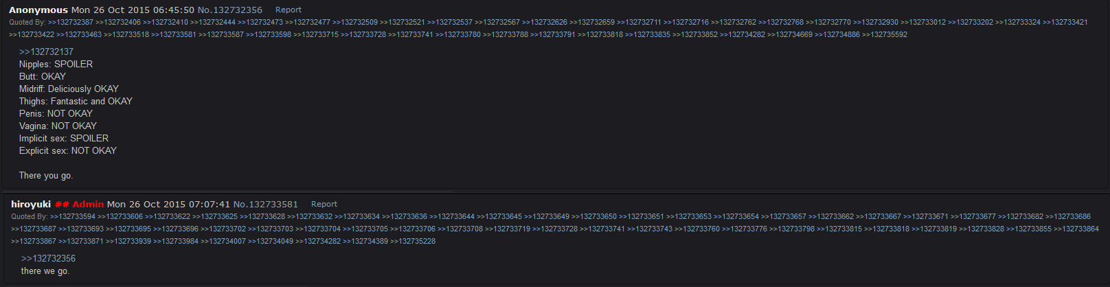 >>735720791Uhh what is 'implicit sex' ? Like cropped porn? Because even spoilered cropped porn got me banned once.