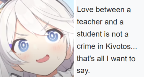 >>735714821>Thank you, Blue Archive>W-What did you call me?>Because your Archives are Blue>Oh...What did they mean by that?