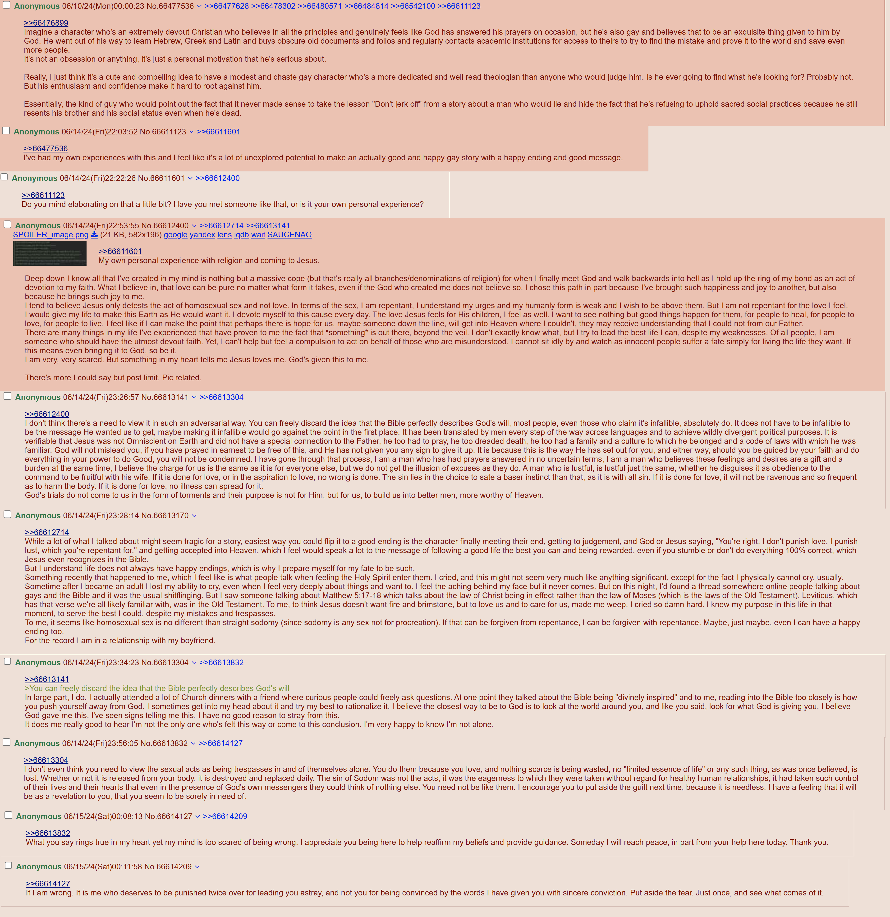 >>735736385Reading this is making me think of my brother. He was always way more religious than me, but when I came out as gay, he came out to me in secret as comfort. As the years go on he gets more religious and pretends to forget we ever related on that level. He sent me so many webms from /pol/, uses the word "degeneracy" verbally in family conversations, hinted that I really need to come along with him. It hurts me so much to see him hate himself to such a degree and he's pushing me away in the process. Repression in the religious crowds is such a torrid mental state to exist in. Your sense of self gets stretched thin.