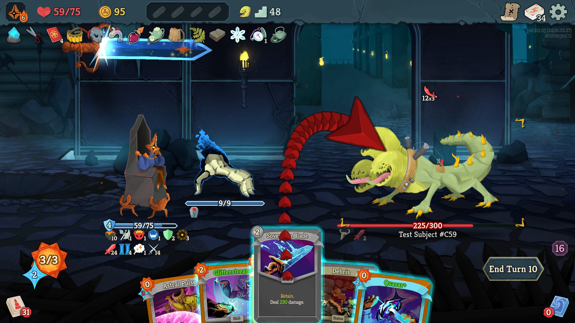 >can't block on the crab's claw missile turn>use skill potion>still can't block, but I can survive with like 10 HP>completely resigned to just taking the damage>notice know thy place+ in my hand>oh, well, it's free, i might as well cast it on the other claw because the missile one is already weak and he's going to hit me next turn>it turns me around